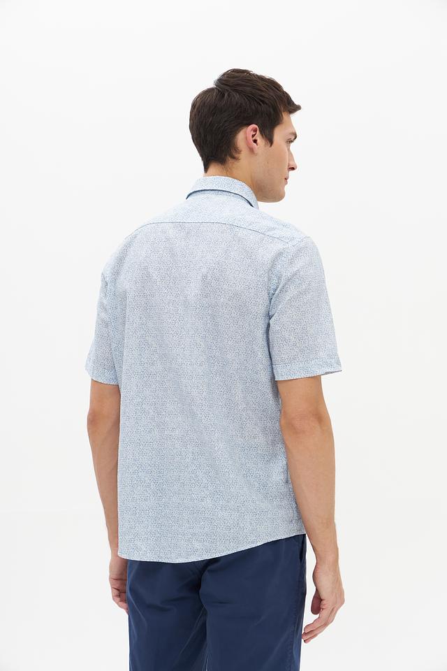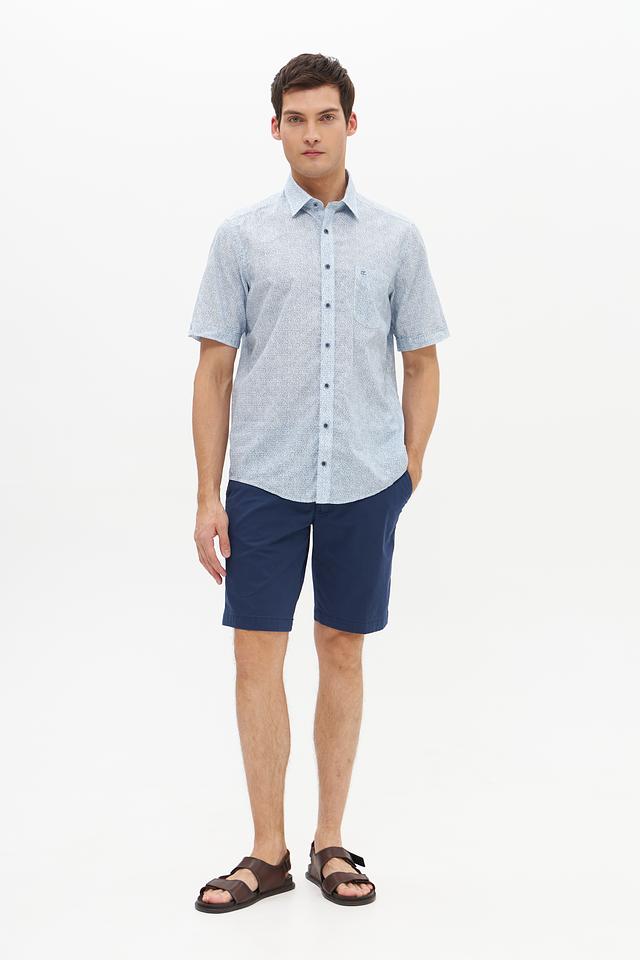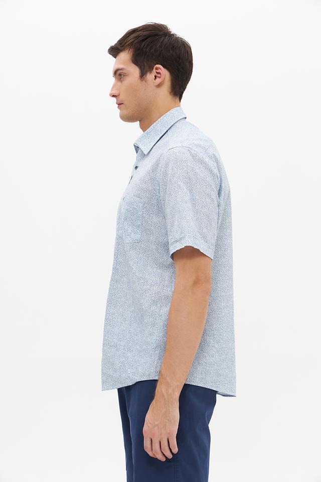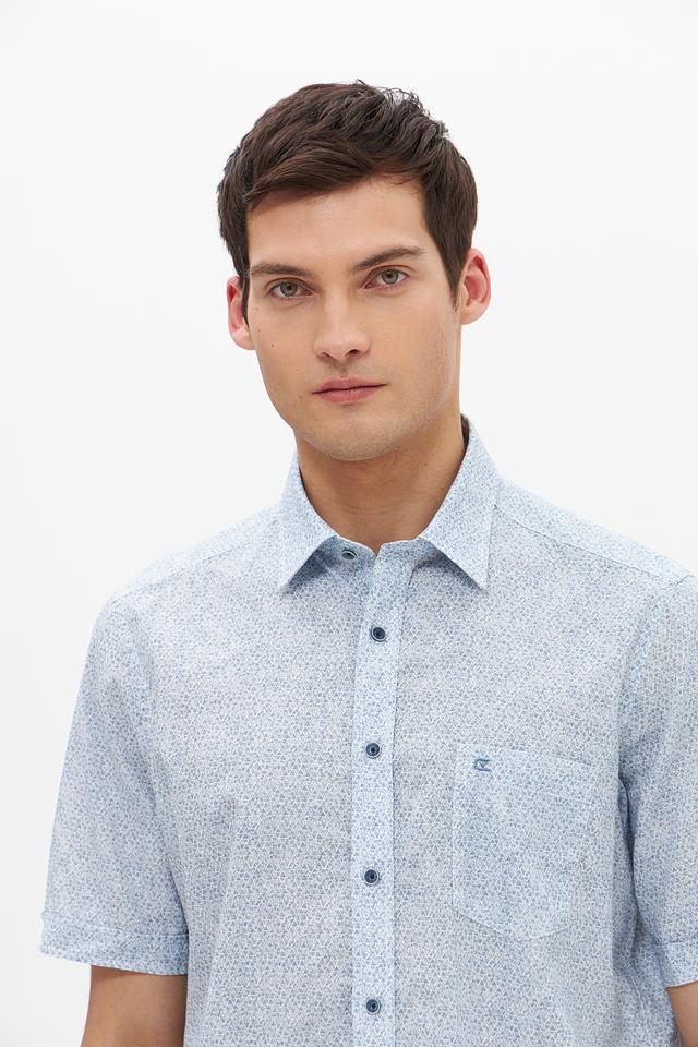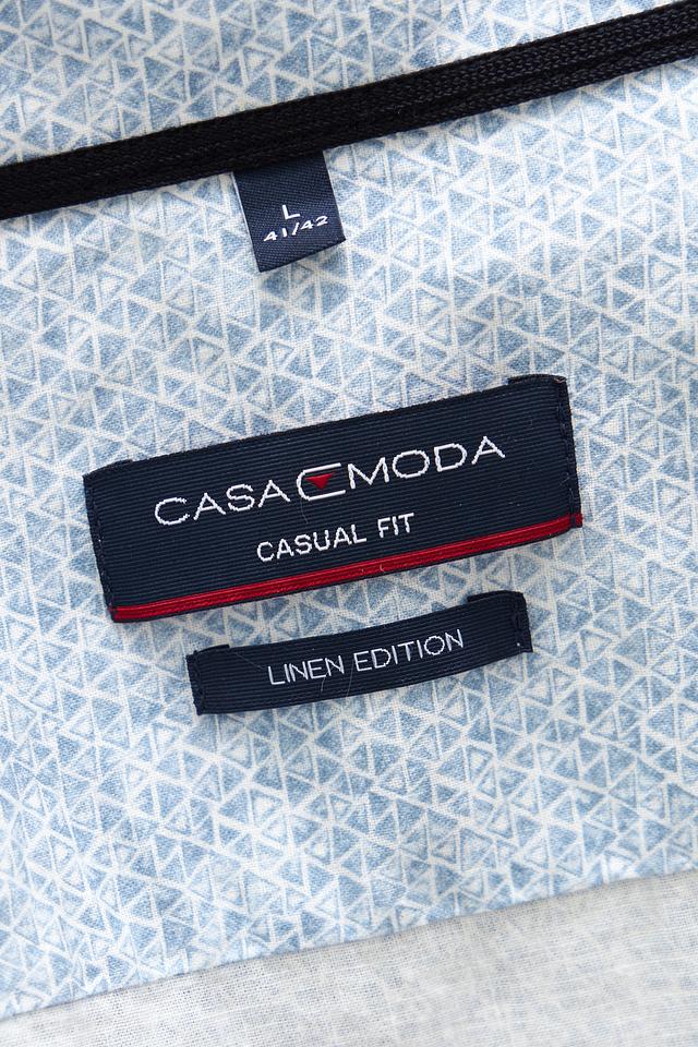 Мужская рубашка Casa Moda голубого цвета с коротким рукавом, выполнена из лёгкой ткани с мелким цветочным принтом. Идеальный выбор для создания стильного и комфортного образа в тёплую погоду. Состав: лен 55%, хлопок 45%