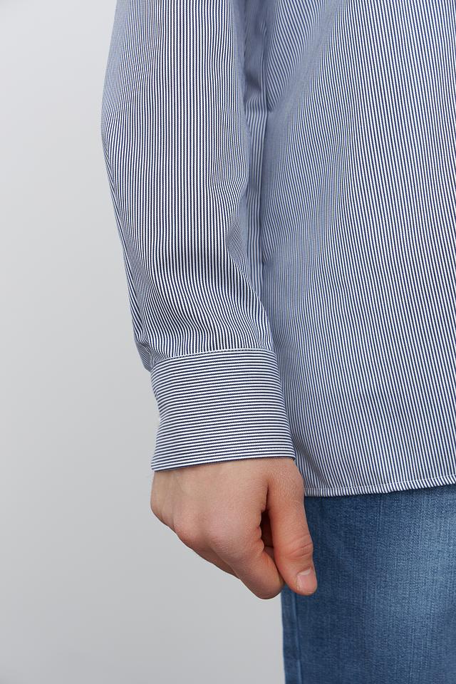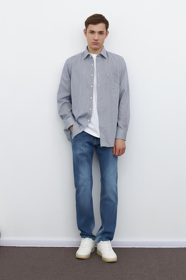 Мужская рубашка Casa Moda голубого цвета в классическую полоску. Изготовлена из 100% хлопка, обеспечивающего комфорт и воздухопроницаемость. Отличный выбор для создания повседневного образа. Состав: хлопок 100%