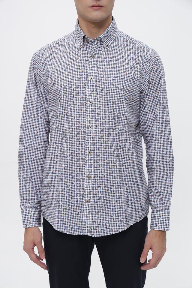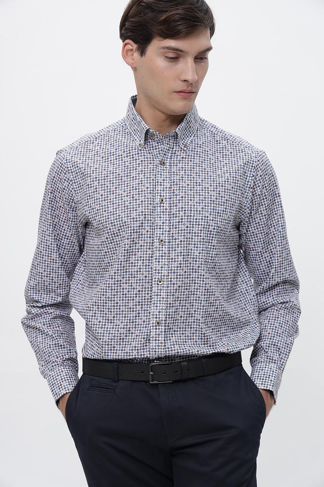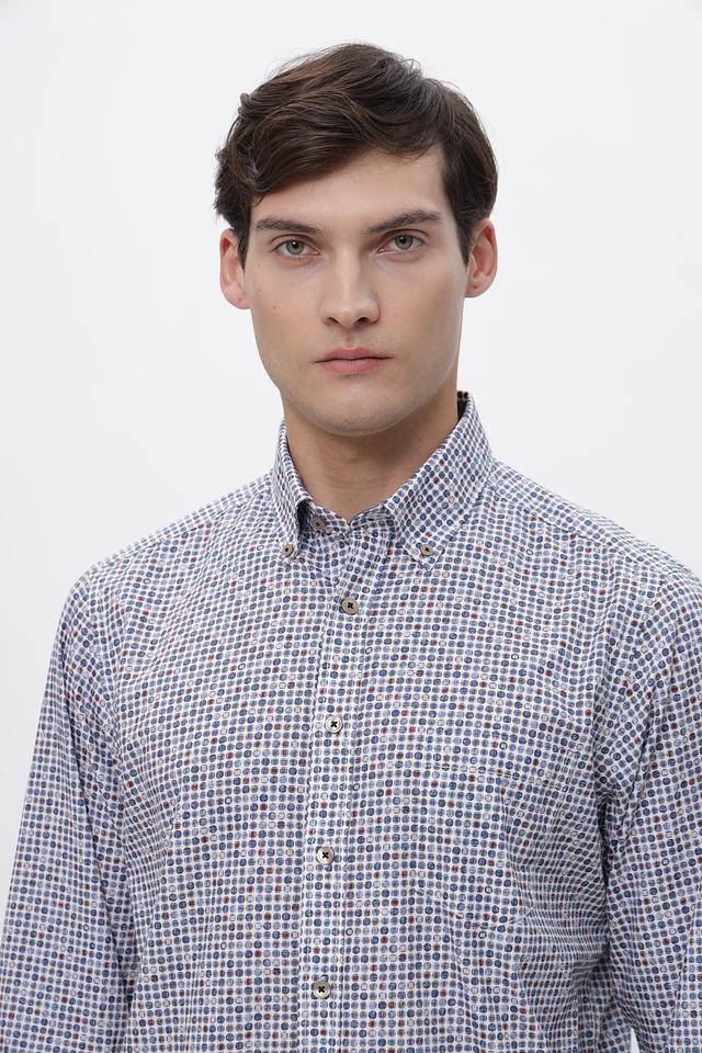 Мужская рубашка Casa Moda синего цвета с клетчатым принтом. Изготовлена из 100% хлопка, обеспечивающего комфорт и воздухопроницаемость. Состав: хлопок 100%