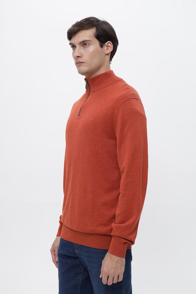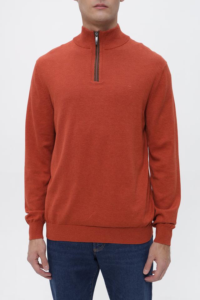 Мужской джемпер Casa Moda терракотового цвета с короткой молнией на горловине. Изготовлен из 100% хлопка, обеспечивающего комфорт и воздухопроницаемость. Состав: хлопок 100%