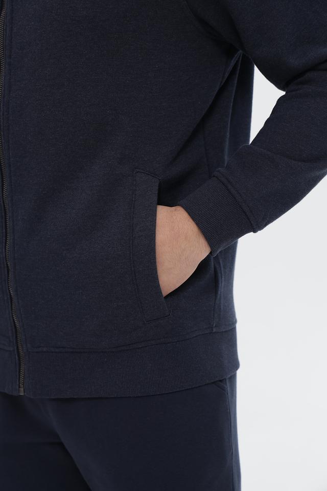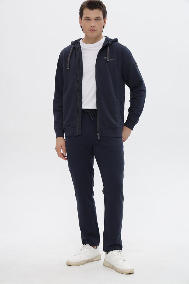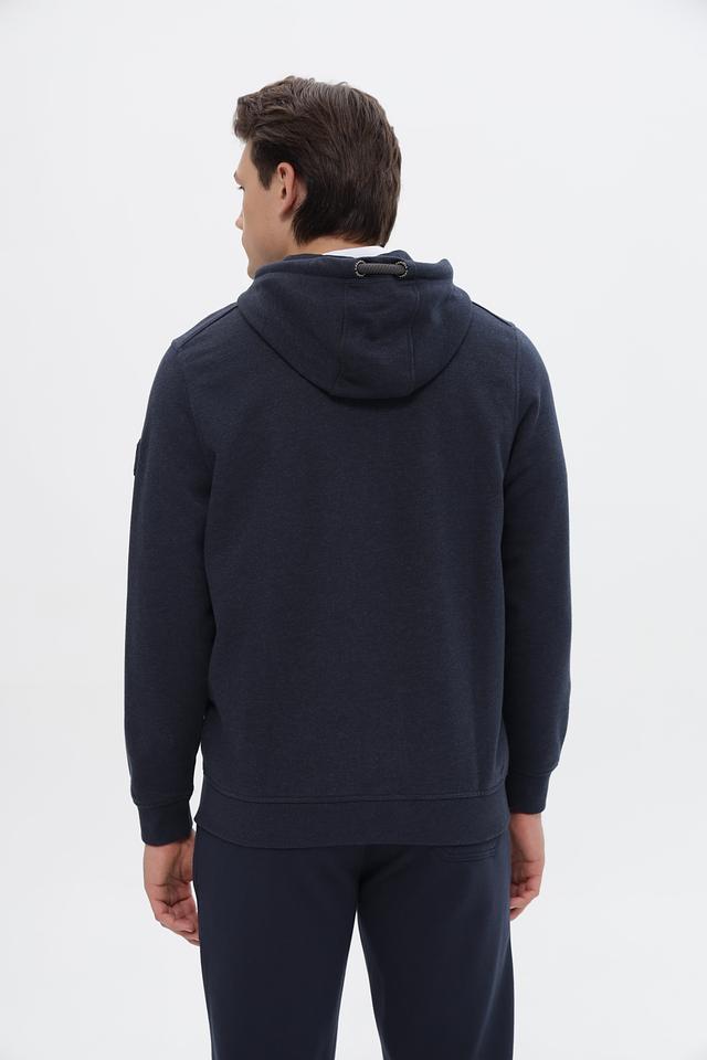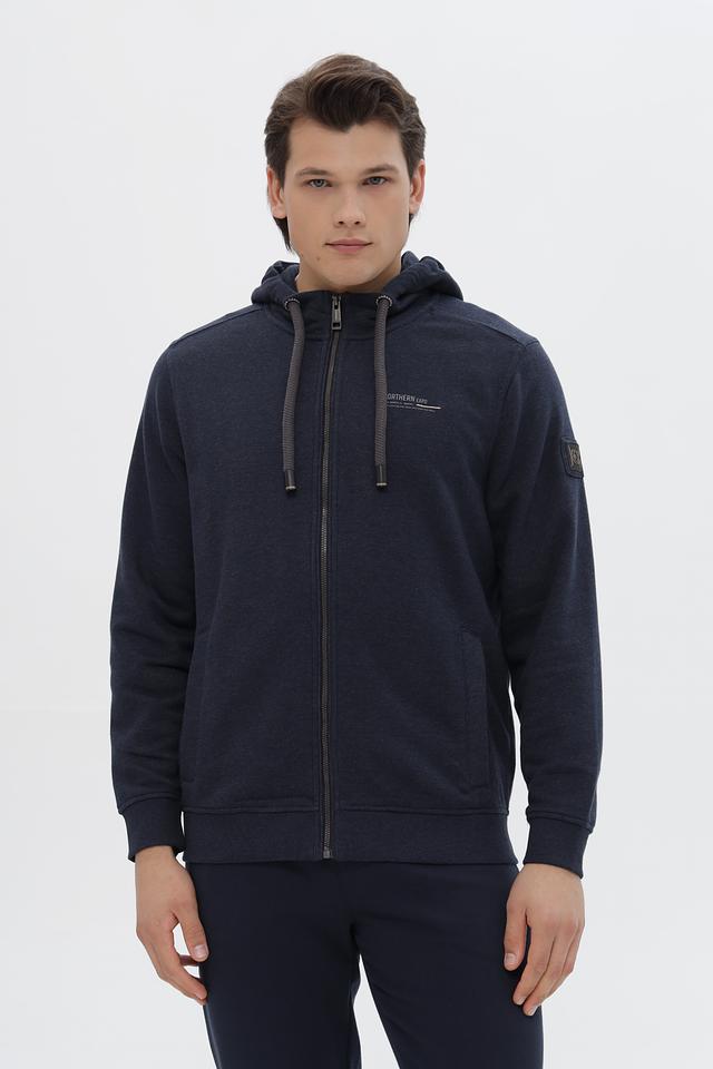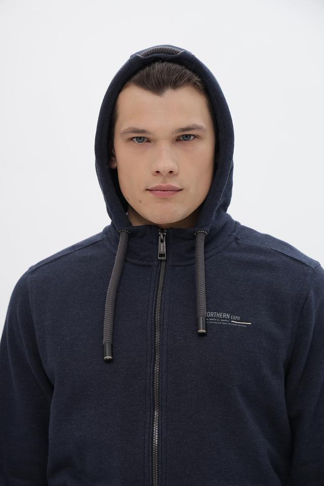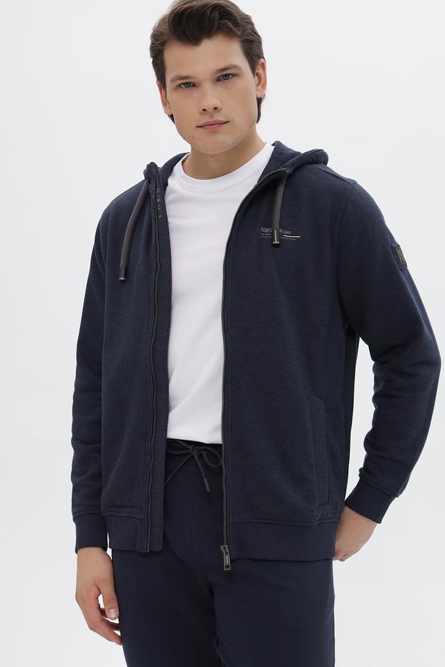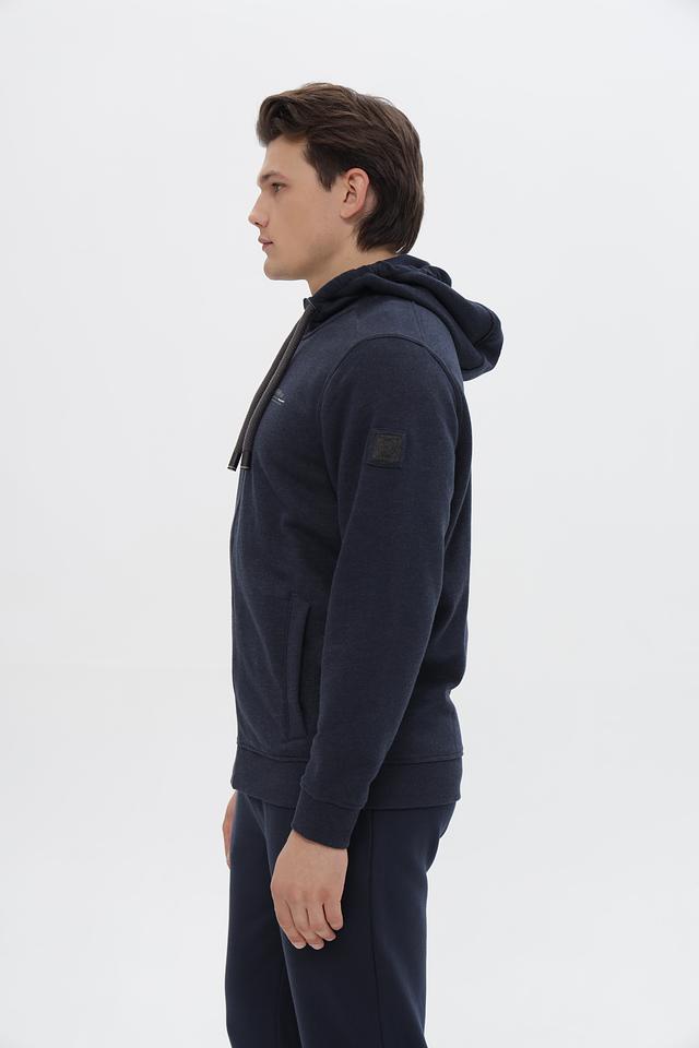 Мужской кардиган Casa Moda темно-синего цвета с капюшоном и молнией. Изготовлен из хлопка с добавлением полиэстера для комфорта и долговечности. Состав: хлопок 60%, полиэстер 40%
