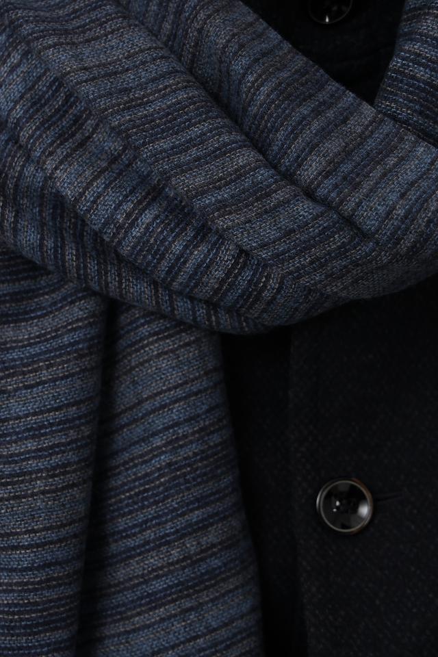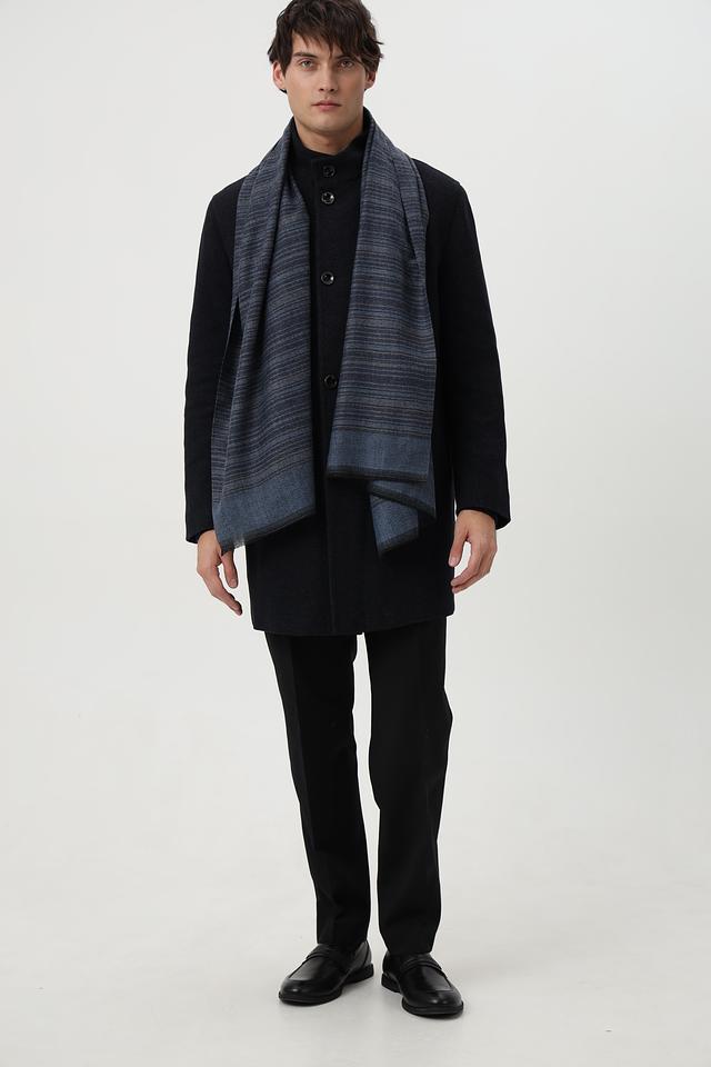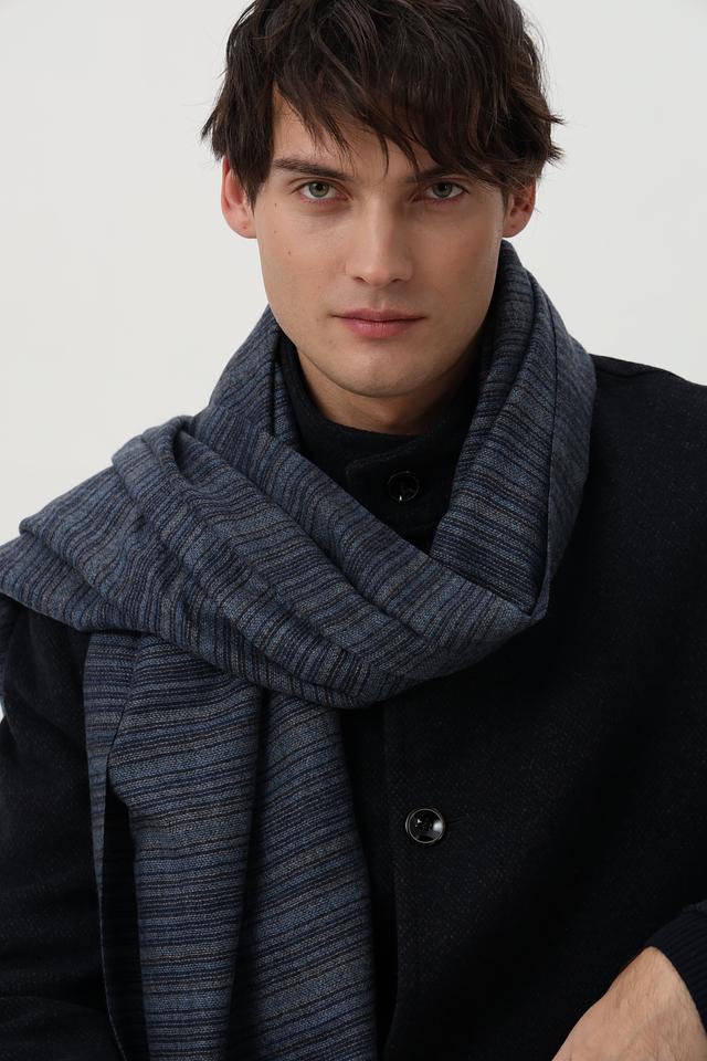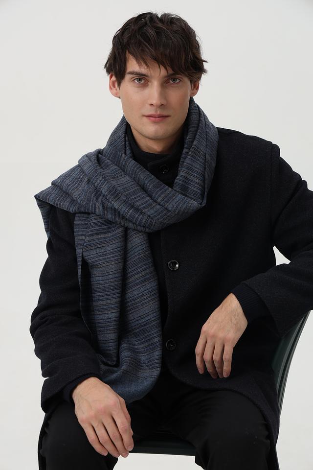 Представляем вашему вниманию мужской шарф от бренда Casa Moda. Шарф выполнен в синих тонах с добавлением серых и черных полос, создающих стильный и современный вид.
