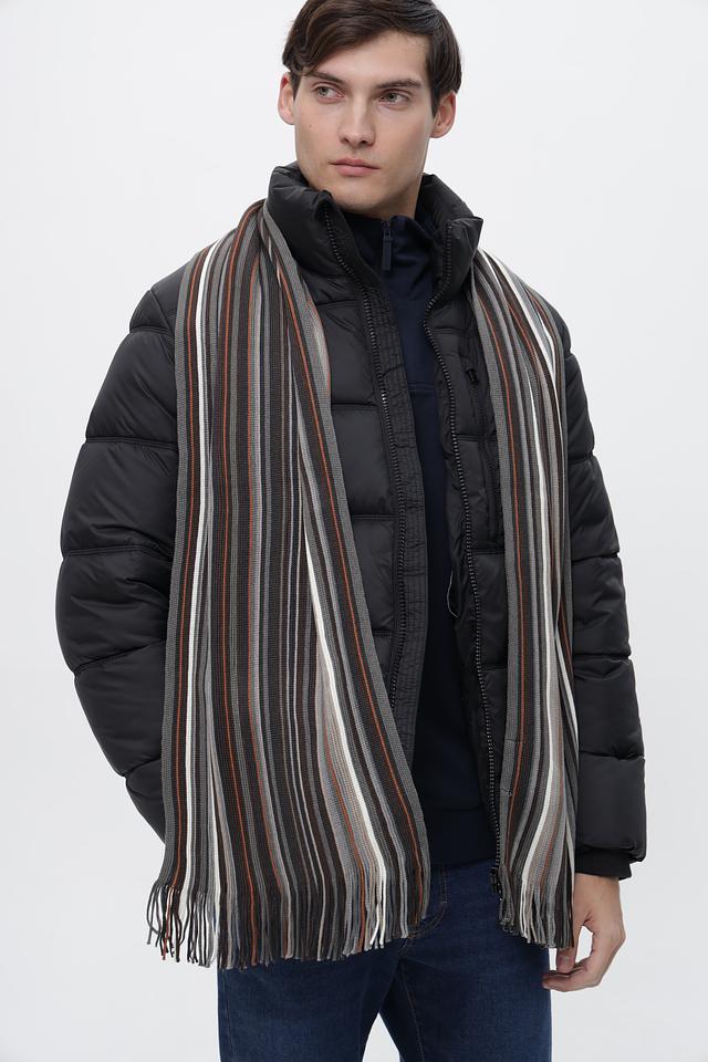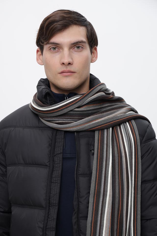 Мужской шарф Casa Moda серого цвета с ярким полосатым узором. Изготовлен из мягкого полиакрила, обеспечивающего комфорт и тепло в холодную погоду. Состав: полиакрил 100%