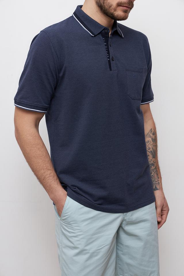 Тёмно-синее поло от Casa Moda с белой полоской на воротнике и рукавах – стильный и комфортный выбор для повседневной носки. Изготовлено из мягкого хлопка с добавлением эластана для удобства и сохранения формы. Состав: хлопок 95%, эластан 5%