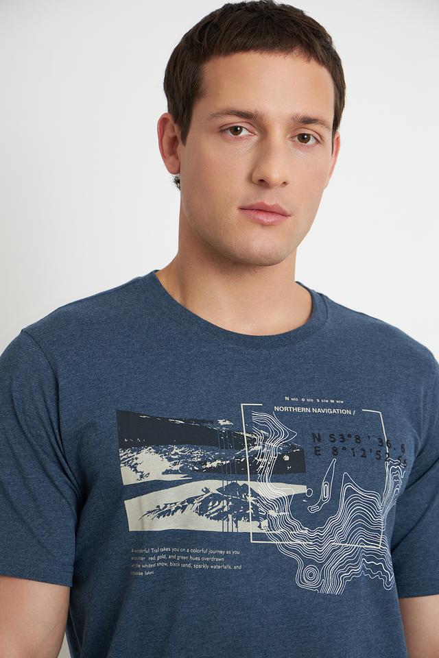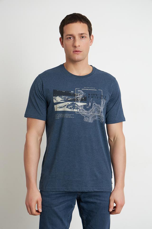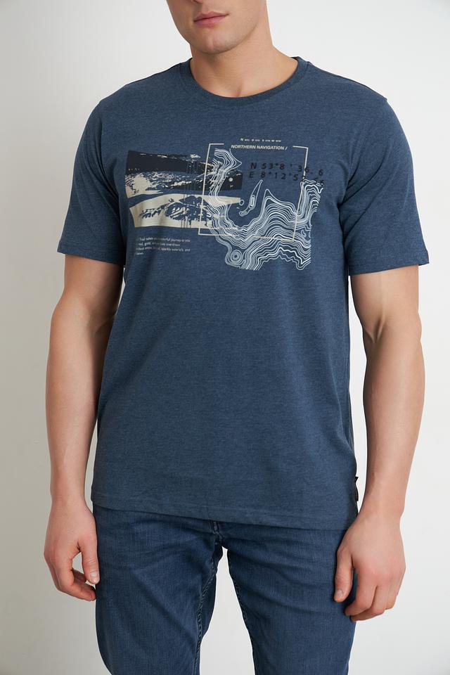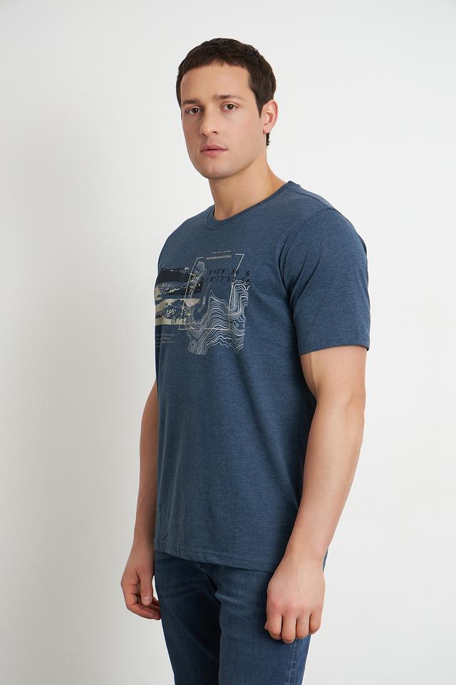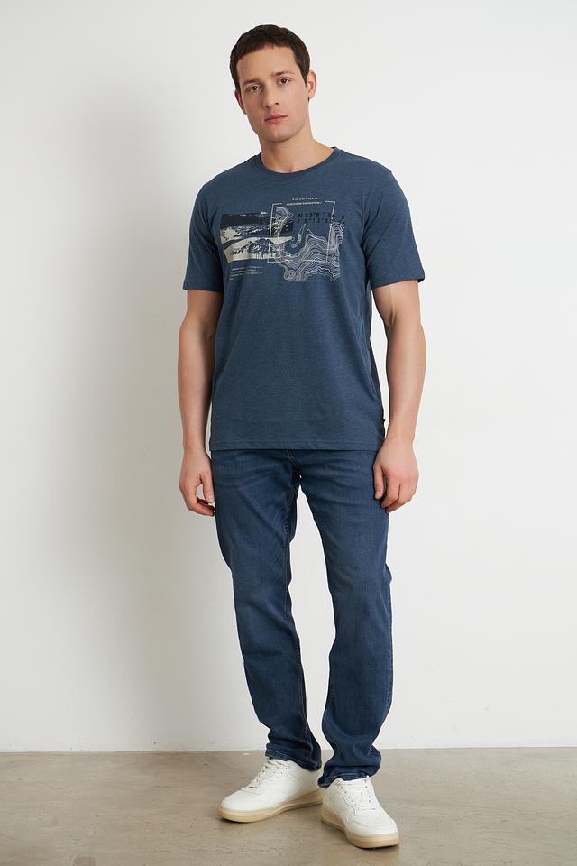 Мужская футболка Casa Moda синего цвета с оригинальным принтом на груди. Изготовлена из мягкого и приятного к телу сочетания хлопка и полиэстера, обеспечивающего комфорт в носке. Состав: хлопок 60%, полиэстер 40%