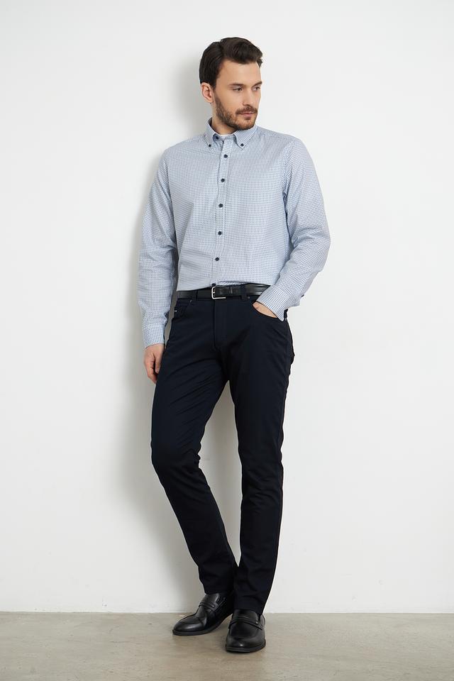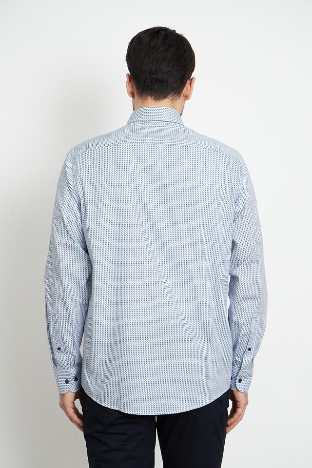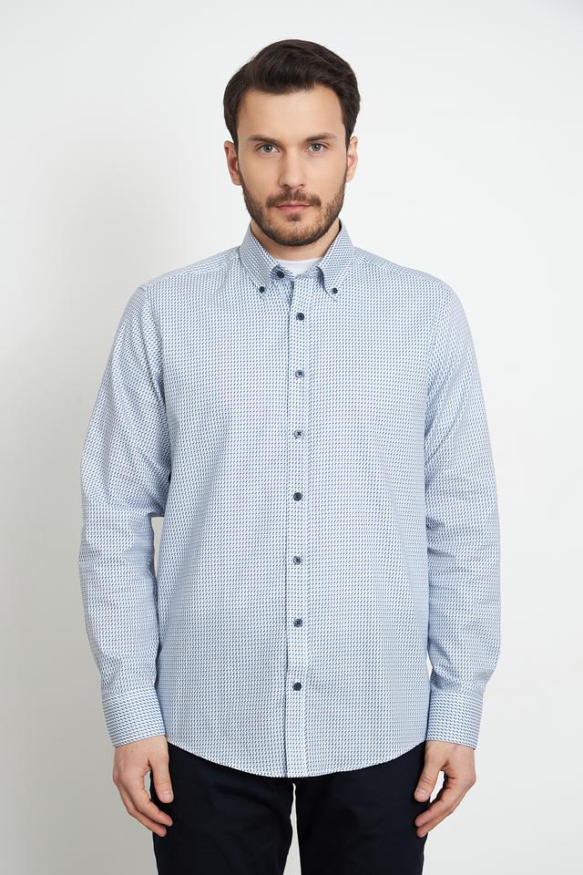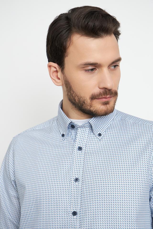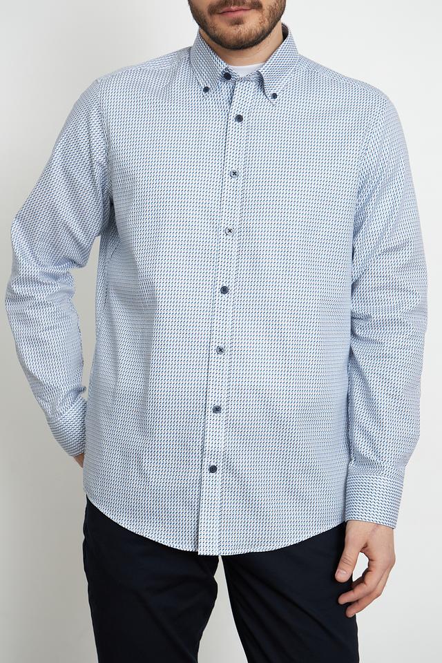 Мужская рубашка Casa Moda голубого цвета с мелким геометрическим рисунком. Классический крой и 100% хлопковый состав обеспечивают комфорт и удобство в носке. Состав: хлопок 100%