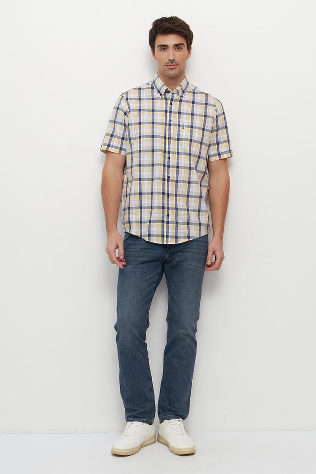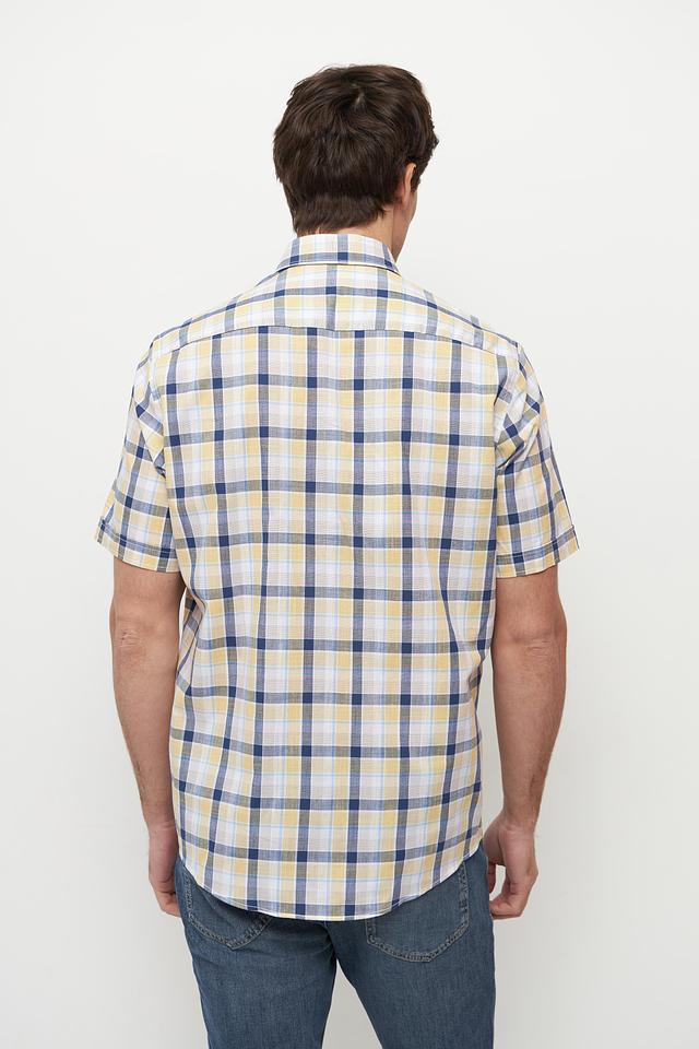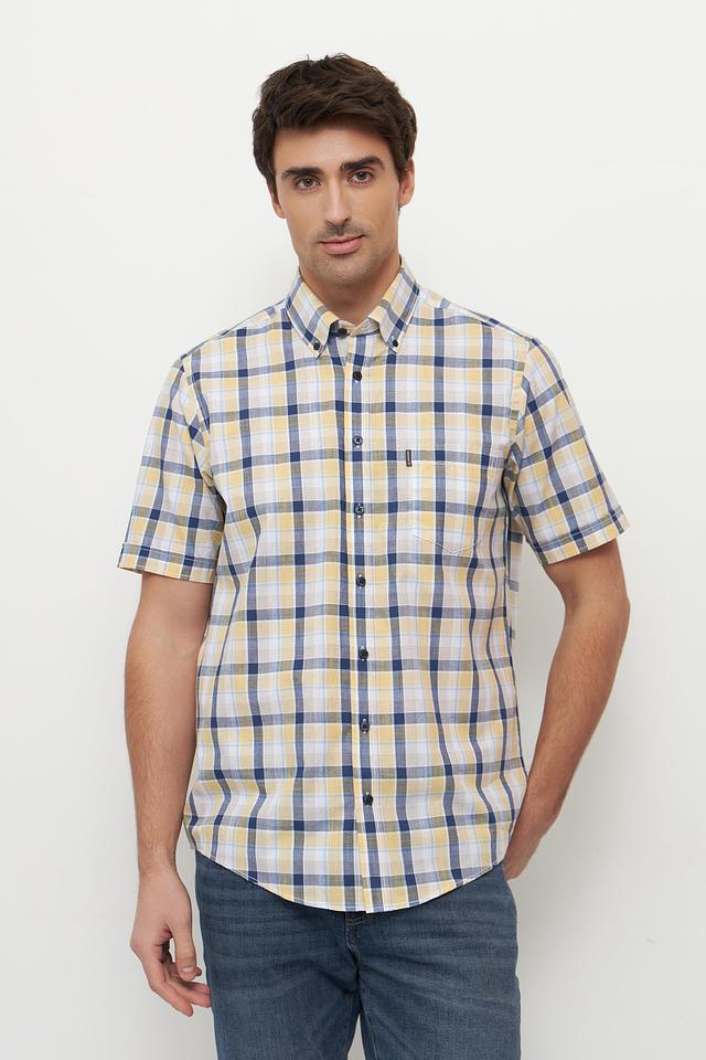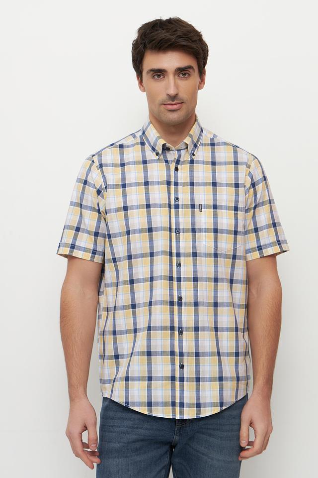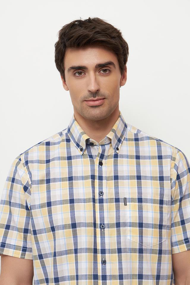 Эта мужская рубашка от Casa Moda выполнена в классическом крое с короткими рукавами. Основной цвет рубашки – жёлтый, дополненный клетчатым узором в синих и белых тонах.