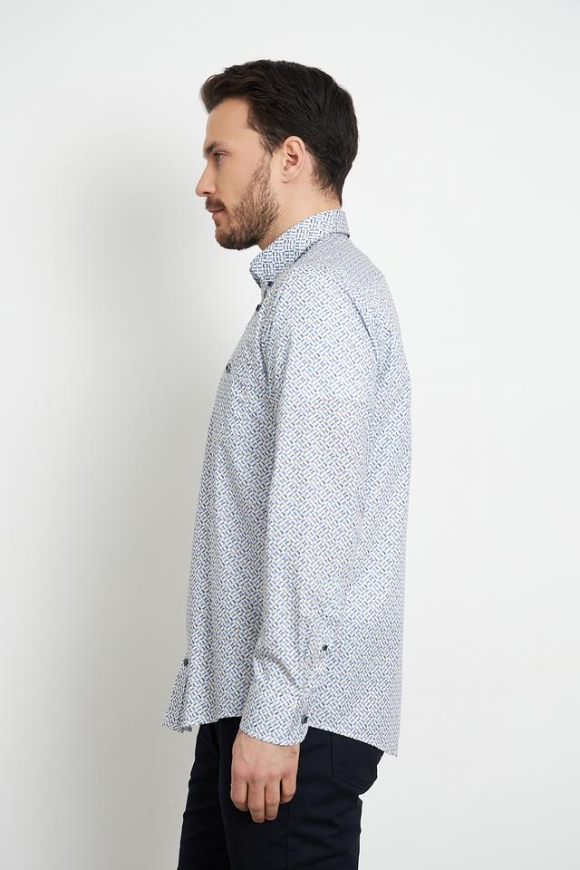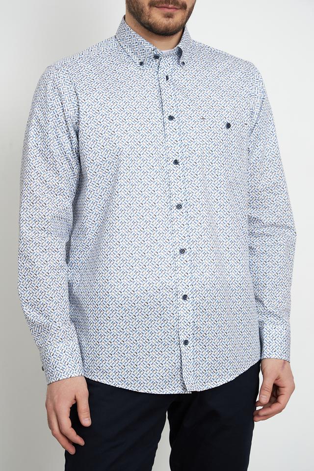 Стильная мужская рубашка Casa Moda голубого цвета с оригинальным геометрическим принтом. Изготовлена из 100% хлопка, обеспечивающего комфорт и воздухопроницаемость. Идеальный выбор для создания элегантного повседневного образа. Состав: хлопок 100%
