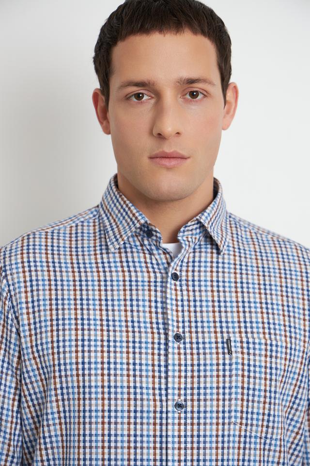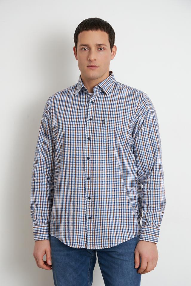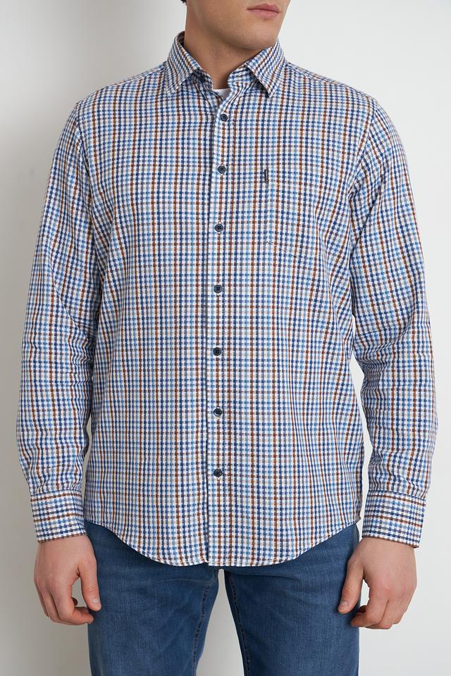 Мужская рубашка Casa Moda синего и коричневого цвета с классическим кроем и длинным рукавом. Изготовлена из 100% хлопка, обеспечивающего комфорт и воздухопроницаемость. Идеальный выбор для создания стильного повседневного образа. Состав: хлопок 100%