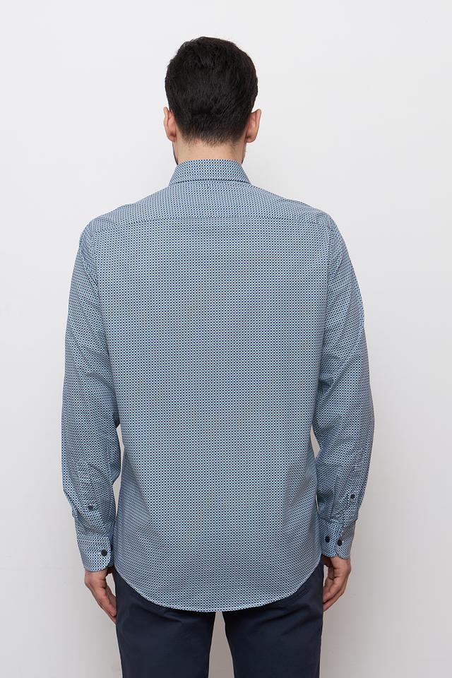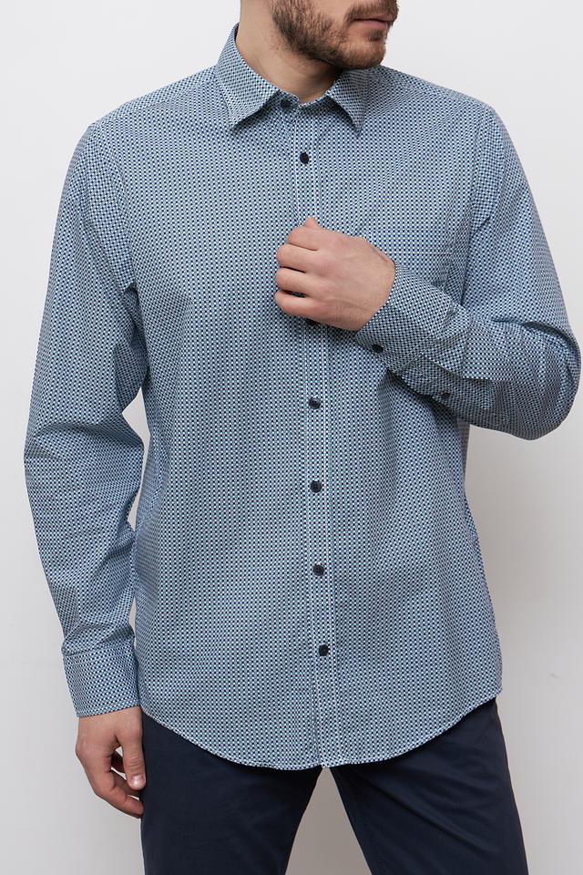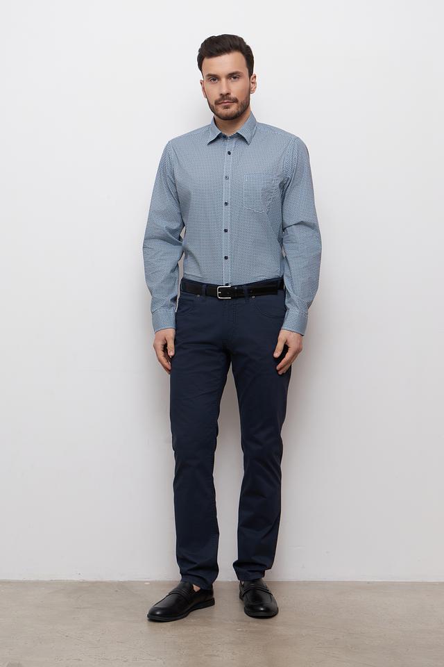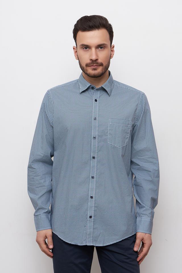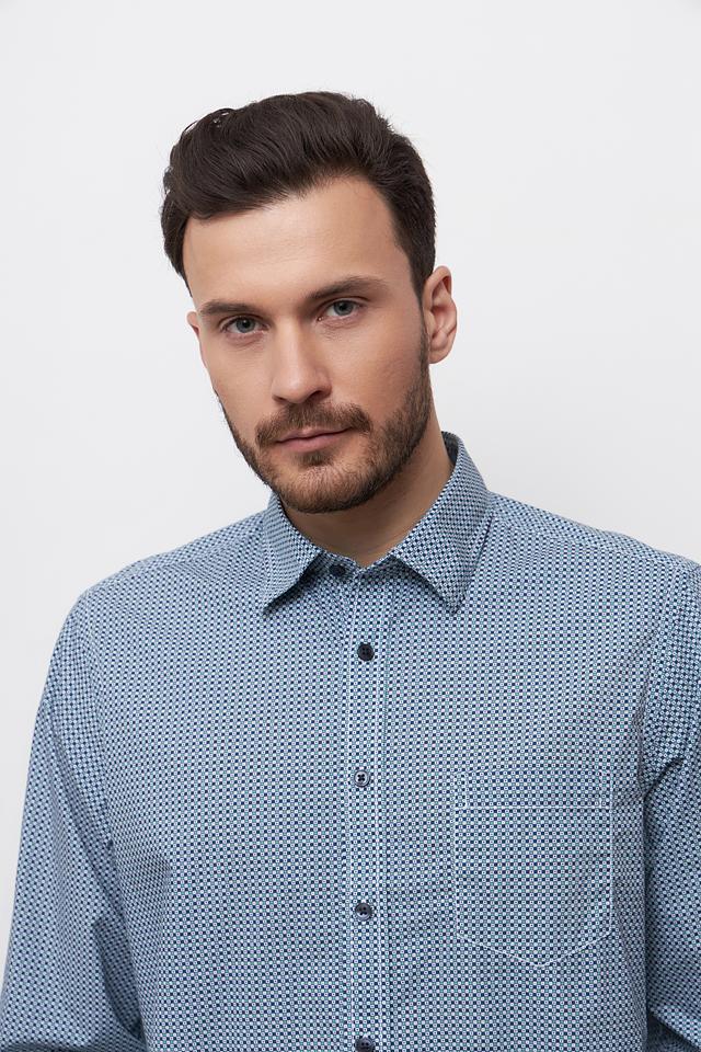 Мужская рубашка Casa Moda голубого цвета с мелким геометрическим рисунком. Классический крой и 100% хлопковый состав обеспечивают комфорт и удобство в носке. Состав: хлопок 100%