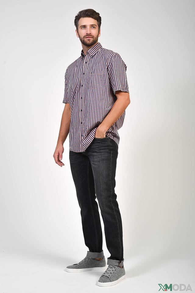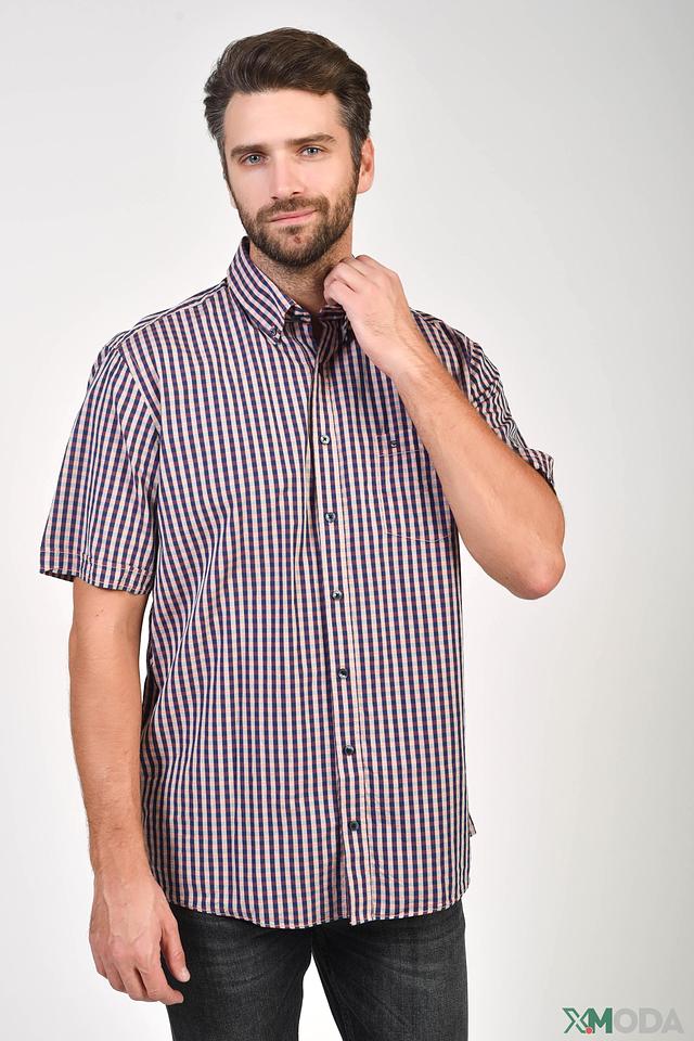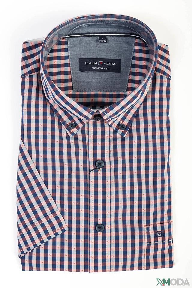 Мужская рубашка Casa Moda сине-красного цвета с коротким рукавом, выполнена в классическом крое и украшена клетчатым принтом. Идеальный выбор для создания стильного и комфортного образа. Состав: хлопок 100%