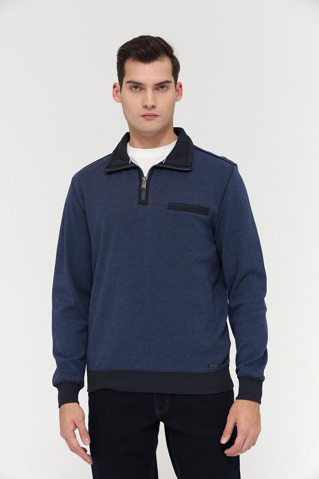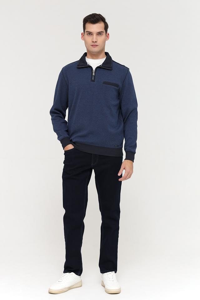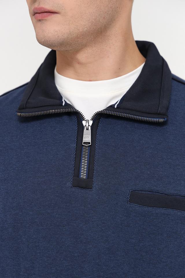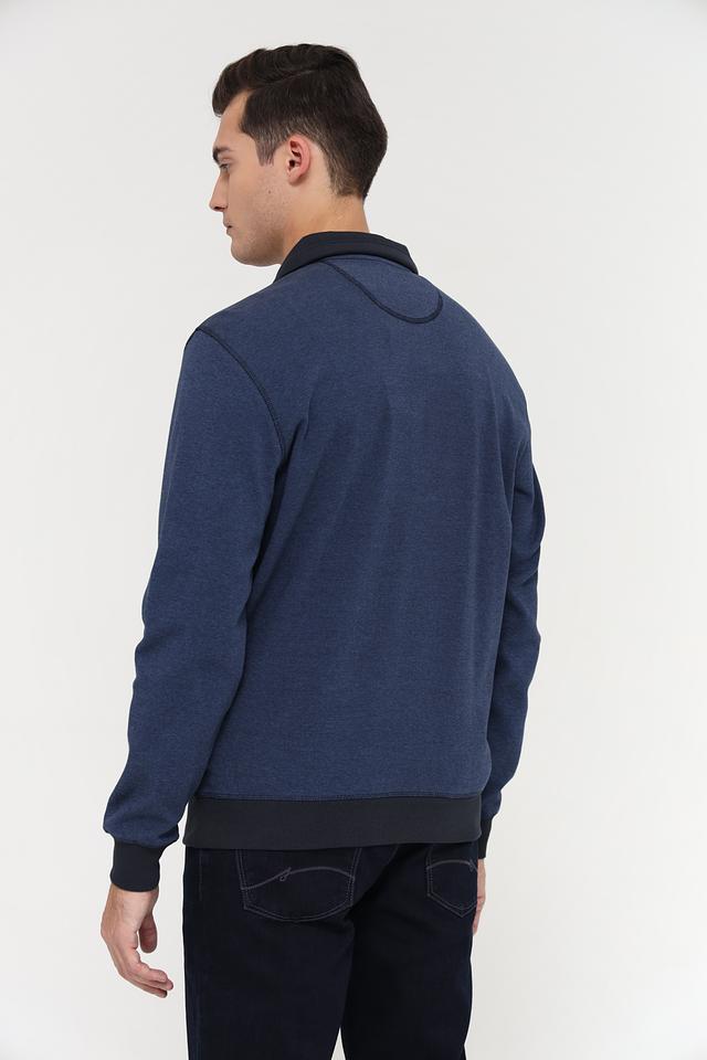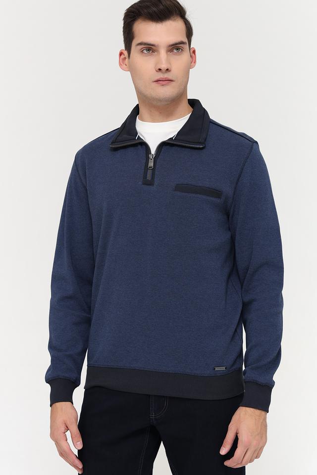 Мужской джемпер Casa Moda синего цвета с короткой молнией и черной отделкой. Изготовлен из 100% хлопка, обеспечивающего комфорт и удобство в носке. Состав: хлопок 100%