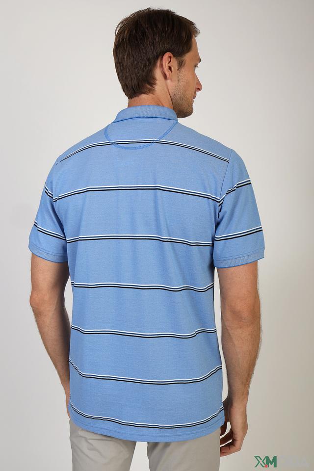 Голубое поло Casa Moda с классическим кроем и горизонтальной полоской. Изготовлено из сочетания хлопка и полиэстера, обеспечивающего комфорт и практичность. Отличный выбор для повседневного гардероба. Состав: полиэстер 50%, хлопок 50%