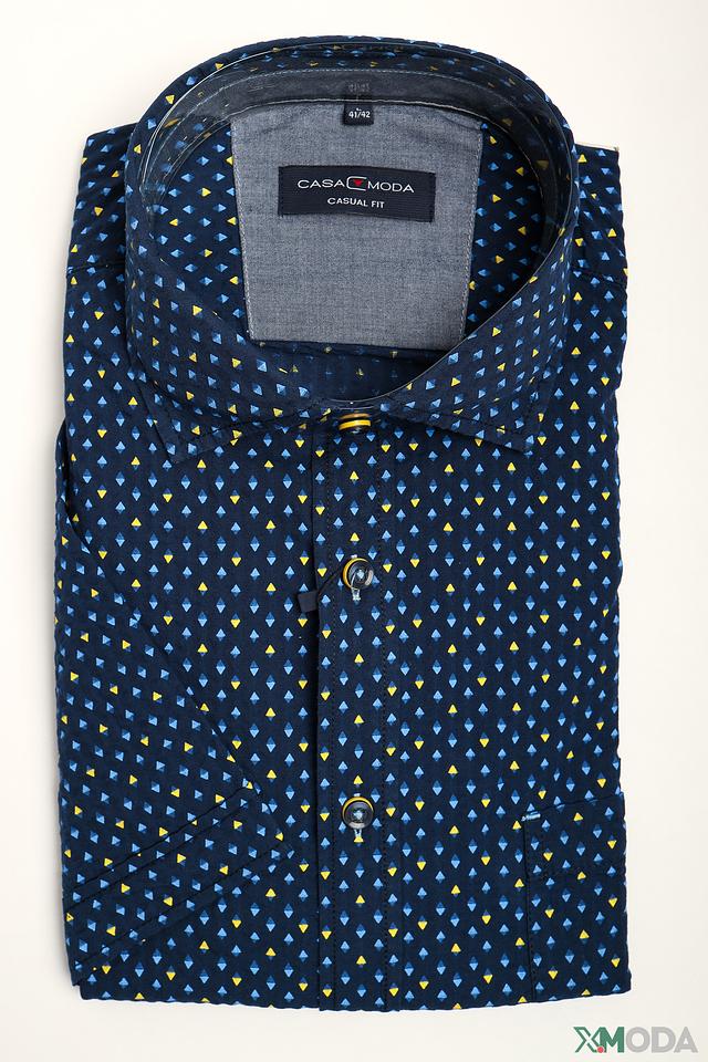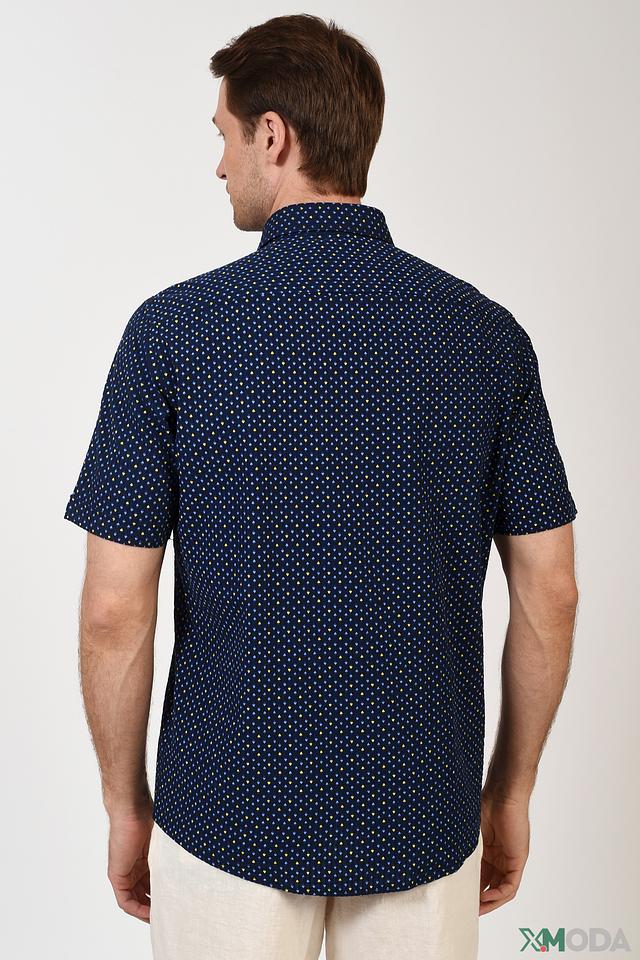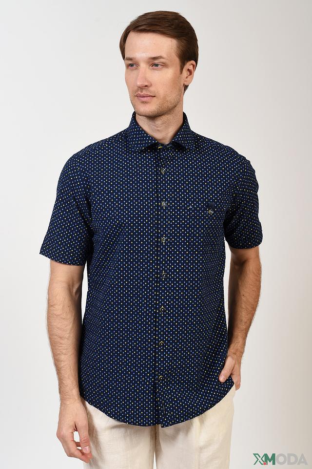 Мужская рубашка Casa Moda темно-синего цвета с коротким рукавом, украшенная мелким принтом в виде горошка. Изготовлена из 100% хлопка, обеспечивающего комфорт и воздухопроницаемость. Состав: хлопок 100%