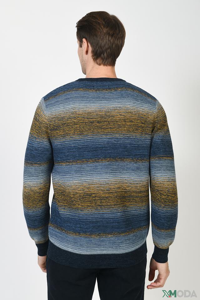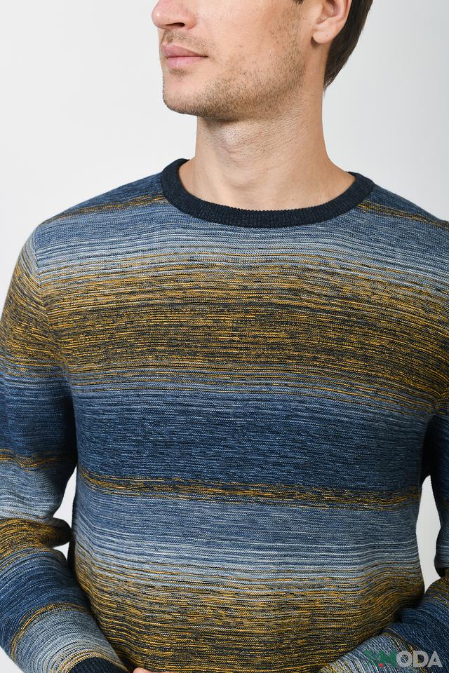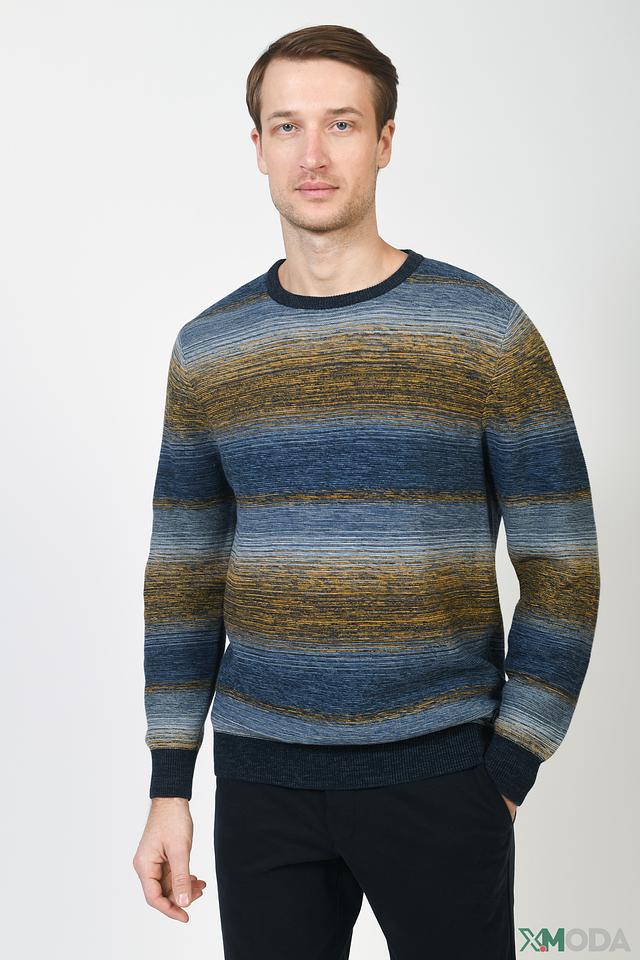 Мужской джемпер Casa Moda синего и горчичного цвета с полосатым узором. Изготовлен из мягкого хлопка с добавлением кашемира для комфорта и тепла. Стильный и универсальный выбор для повседневного гардероба. Состав: хлопок 95%, кашемир 5%