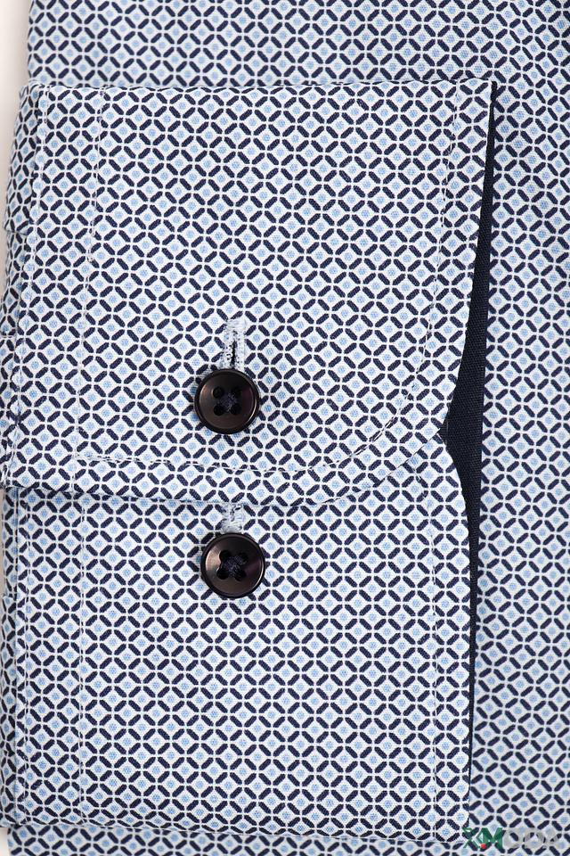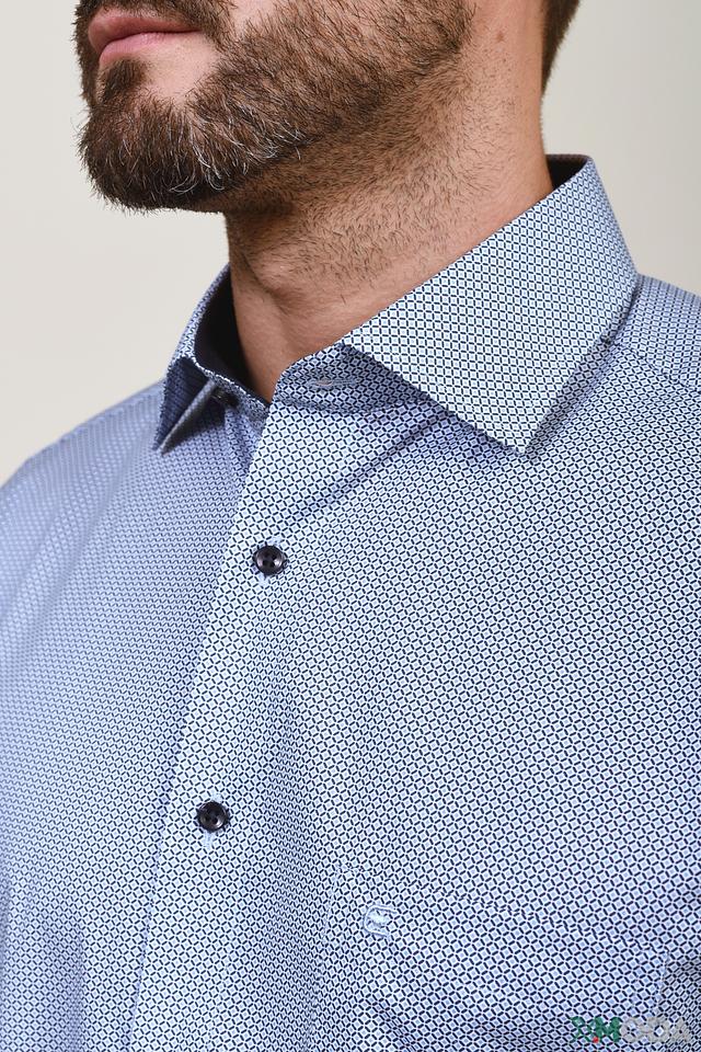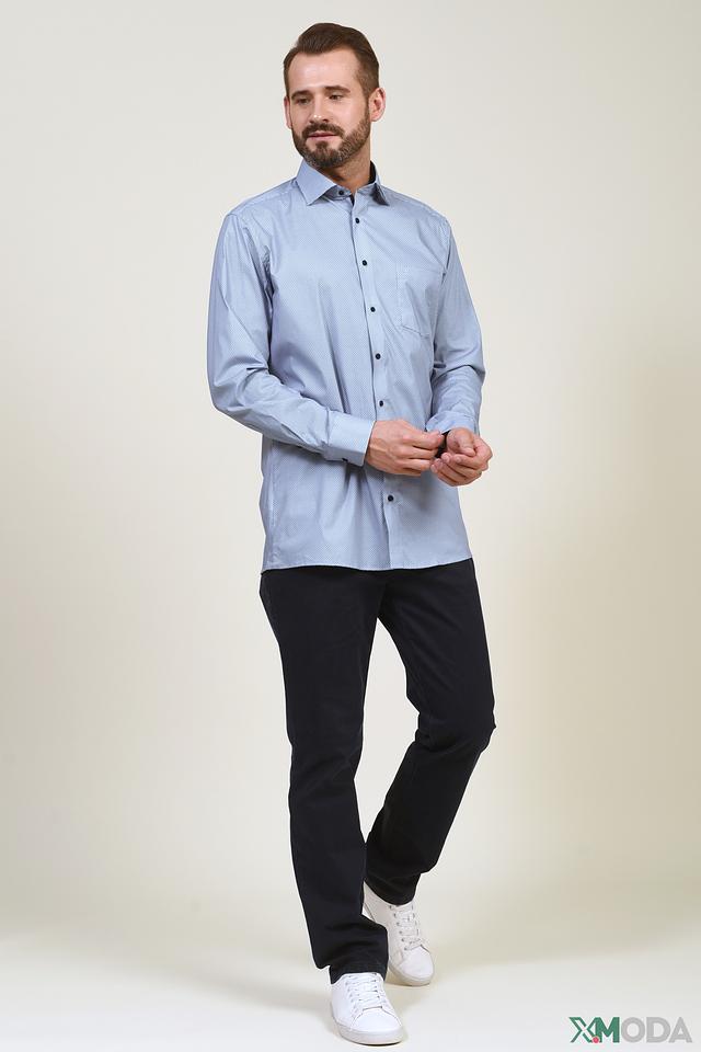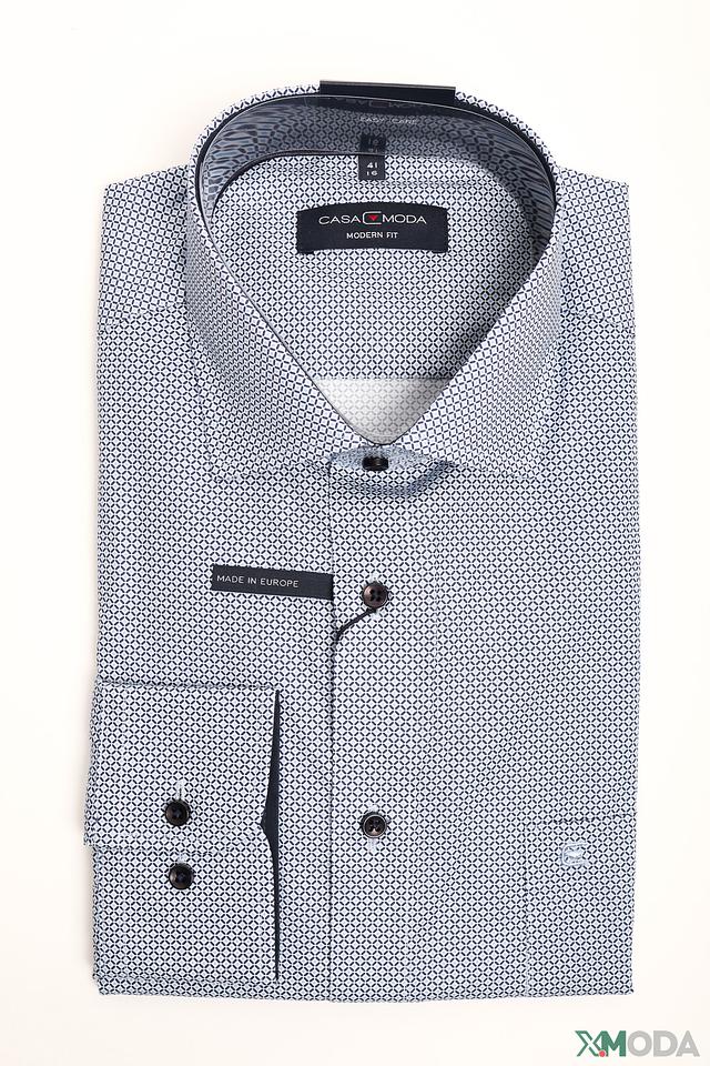 Голубая рубашка Casa Moda с мелким геометрическим рисунком – отличный выбор для создания стильного и комфортного образа. Классический крой и сочетание хлопка с эластаном обеспечивают удобную посадку и практичность. Состав: хлопок 97%, эластан 3%