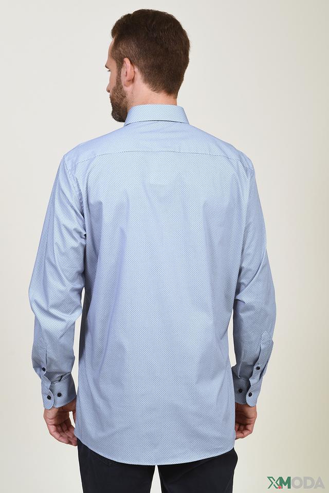 Эта рубашка от Casa Moda выполнена в светло-голубом цвете и украшена мелким геометрическим рисунком, придающим ей элегантный вид. Модель имеет классический крой с длинными рукавами и стандартной воротником.