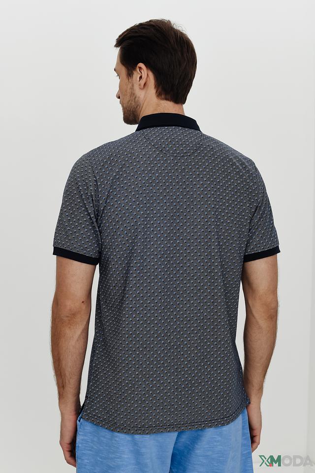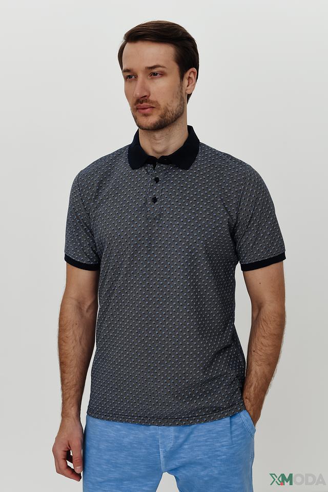 Это мужское поло от бренда Casa Moda – отличный выбор для создания стильного и комфортного образа. Основной цвет поло – темно-синий, а вся поверхность покрыта мелким геометрическим принтом, состоящим из белых и серых элементов.