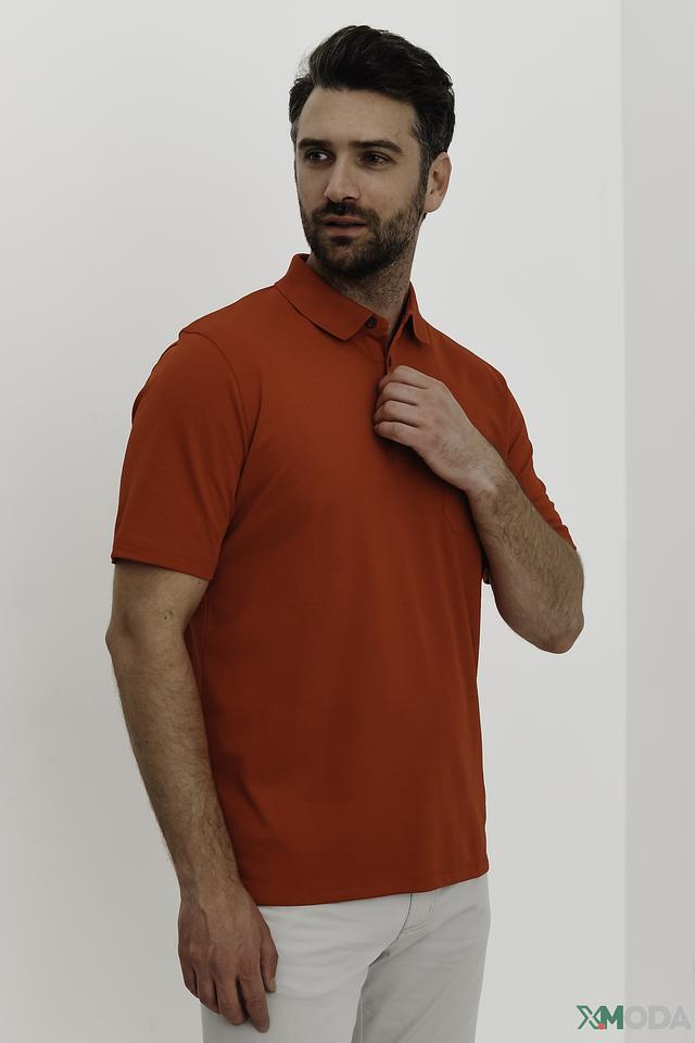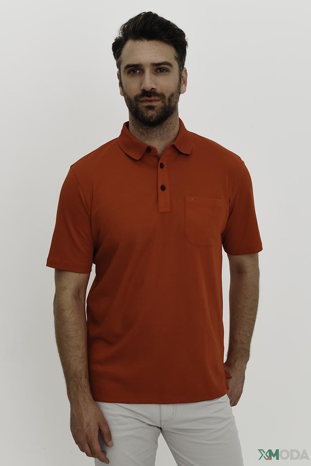 Это классическое мужское поло от бренда Casa Moda выполнено в насыщенном красном цвете. Модель имеет короткие рукава и традиционный воротник на пуговицах.
