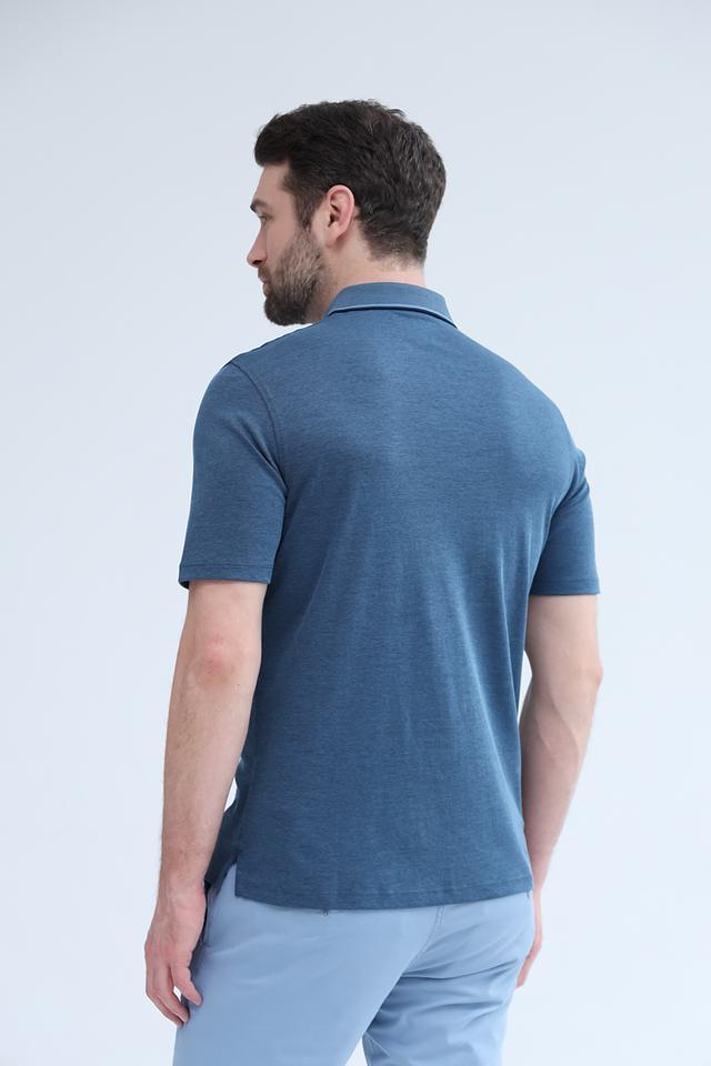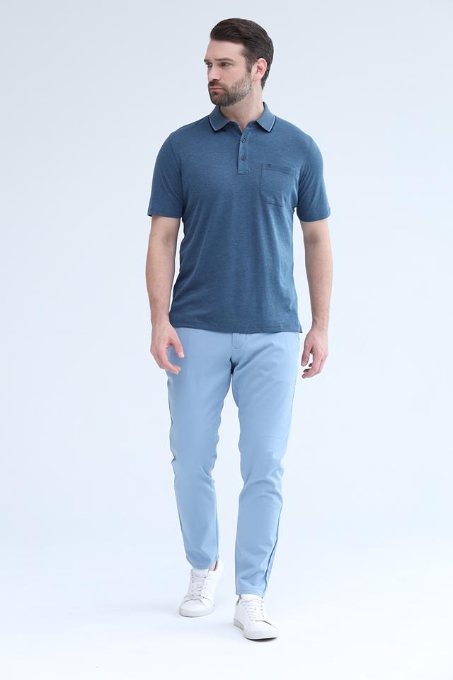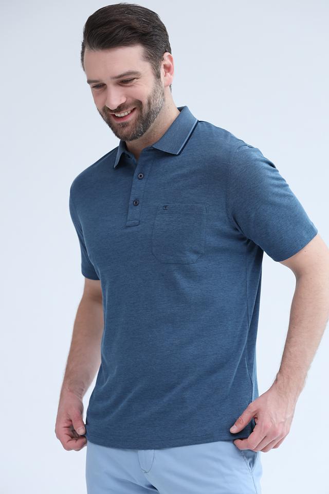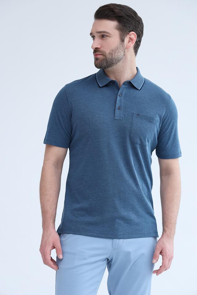 Мужское поло Casa Moda синего цвета выполнено из хлопкового трикотажа с добавлением полиэстера. Модель имеет классический крой, короткие рукава и нагружный карман. Состав: хлопок 55%, полиэстер 45%