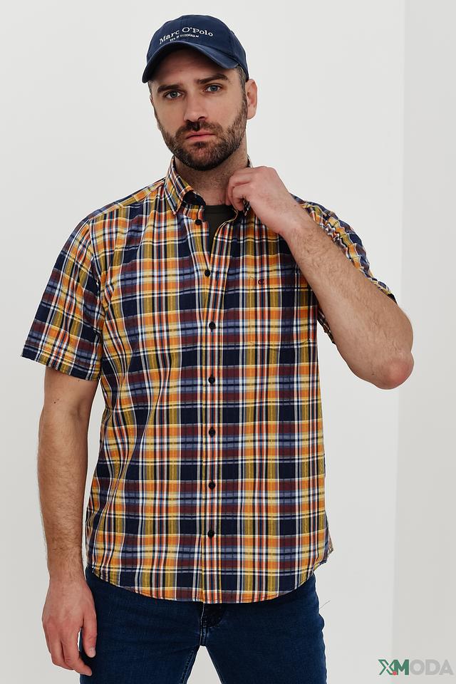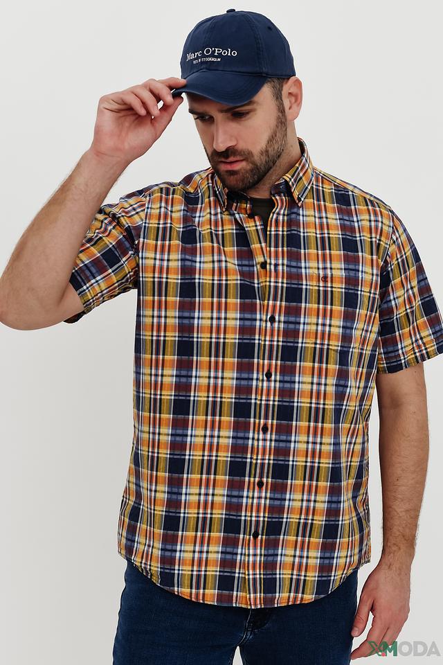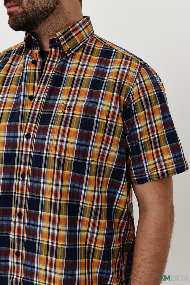 Мужская рубашка Casa Moda жёлто-синей расцветки с коротким рукавом. Изготовлена из 100% хлопка, обеспечивающего комфорт и воздухопроницаемость. Отличный выбор для повседневного образа. Состав: хлопок 100%