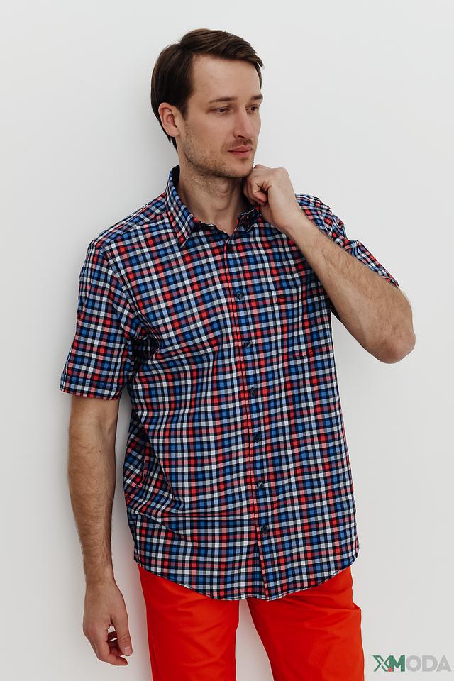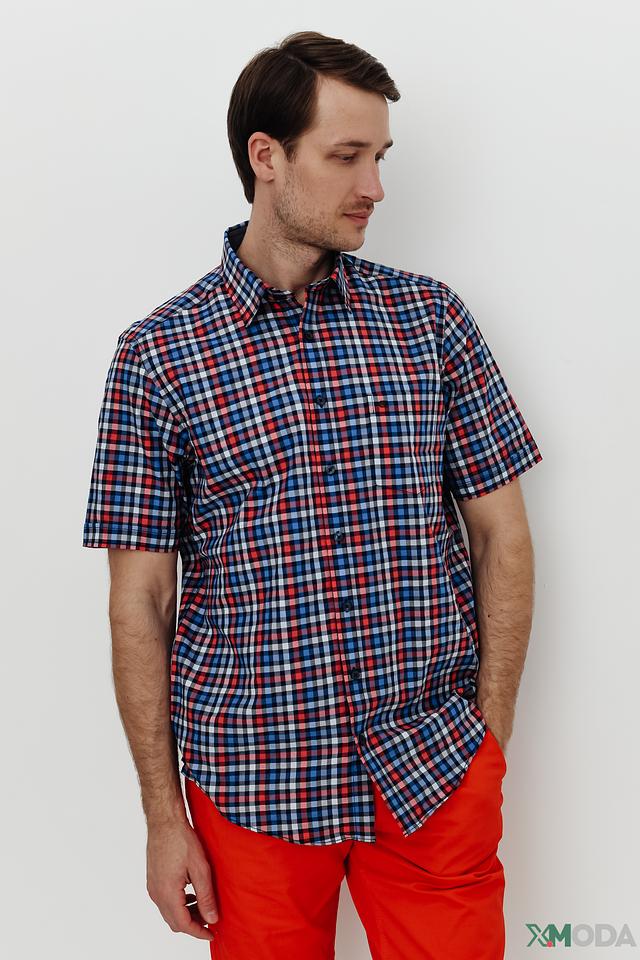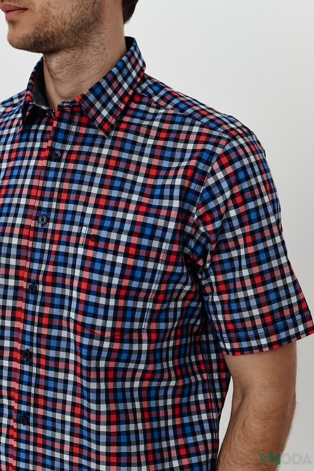 Мужская рубашка Casa Moda с коротким рукавом выполнена в яркой клетке сине-красных оттенков. Изготовлена из 100% хлопка, обеспечивающего комфорт и воздухопроницаемость. Состав: хлопок 100%