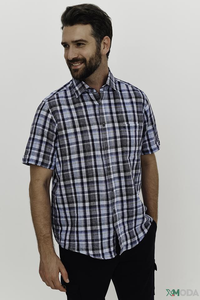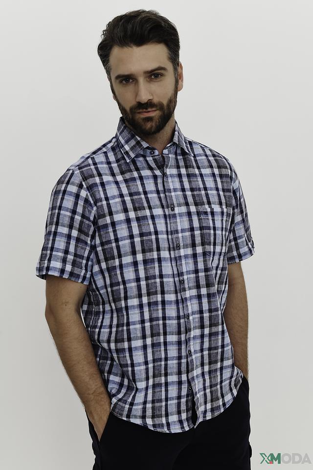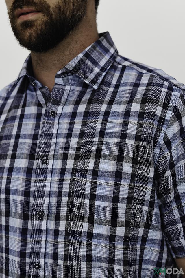 Рубашка имеет короткий рукав, что делает ее идеальной для теплой погоды. Классический крой обеспечивает комфортную посадку по фигуре. Изготовлена из высококачественного смесового материала – 55% лен и 45% хлопок, что гарантирует приятные тактильные ощущения и долговечность.