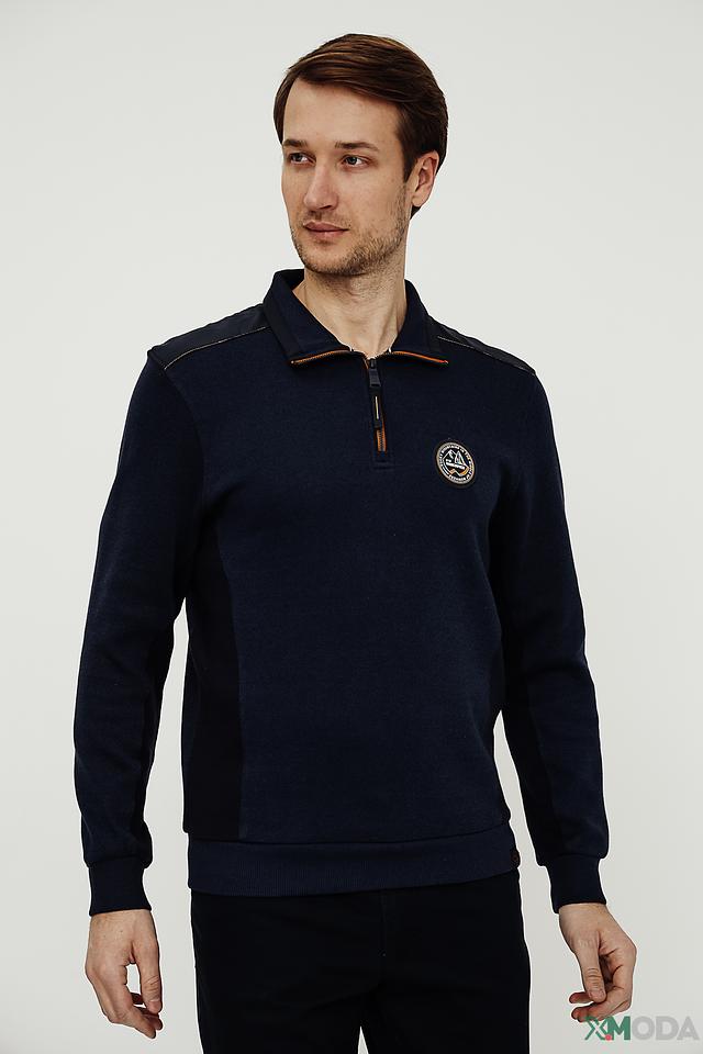 Мужской джемпер Casa Moda темно-синего цвета с воротником-стойкой и молнией. Изготовлен из хлопка с добавлением полиэстера для комфорта и долговечности. Отличается стильным дизайном с декоративной нашивкой. Состав: хлопок 88%, полиэстер 12%