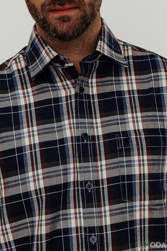 Эта рубашка от Casa Moda станет отличным дополнением к вашему гардеробу. Выполнена в классическом крое с длинными рукавами и традиционным воротником. Основной цвет рубашки – синий, а рисунок представляет собой клетку, выполненную в сочетании синих, белых и коричневых оттенков.