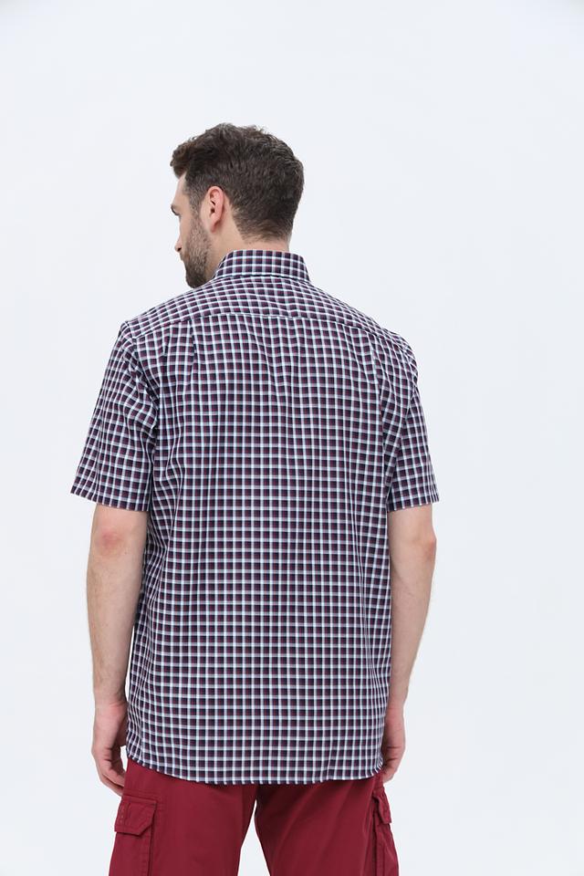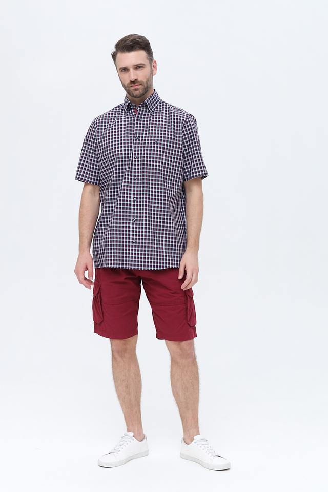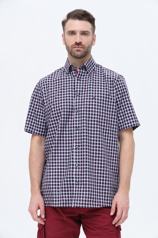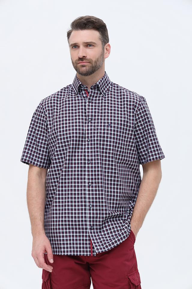 Мужская рубашка Casa Moda с коротким рукавом выполнена в классической клетке сине-бордового цвета. Изготовлена из 100% хлопка, обеспечивающего комфорт и воздухопроницаемость. Состав: хлопок 100%