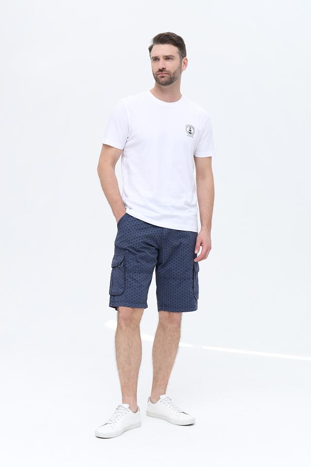 Шорты оснащены двумя боковыми карманами и двумя накладными карманами на бедрах, что обеспечивает функциональность и удобство. Пояс шорт дополнен шлевками для ремня, что позволяет регулировать посадку по фигуре. Модель выполнена из 100% хлопка, что гарантирует комфорт и воздухопроницаемость в жаркую погоду.