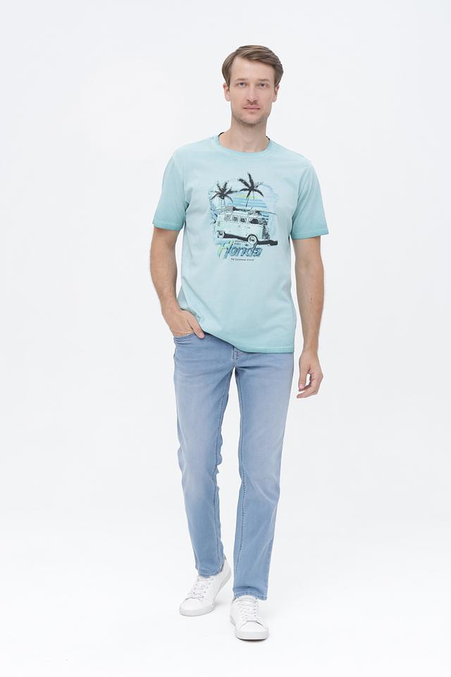 Мужская футболка Casa Moda цвета мятного с ярким принтом в стиле ретро. Изготовлена из 100% хлопка, обеспечивающего комфорт и воздухопроницаемость. Отличный выбор для создания повседневного образа. Состав: хлопок 100%