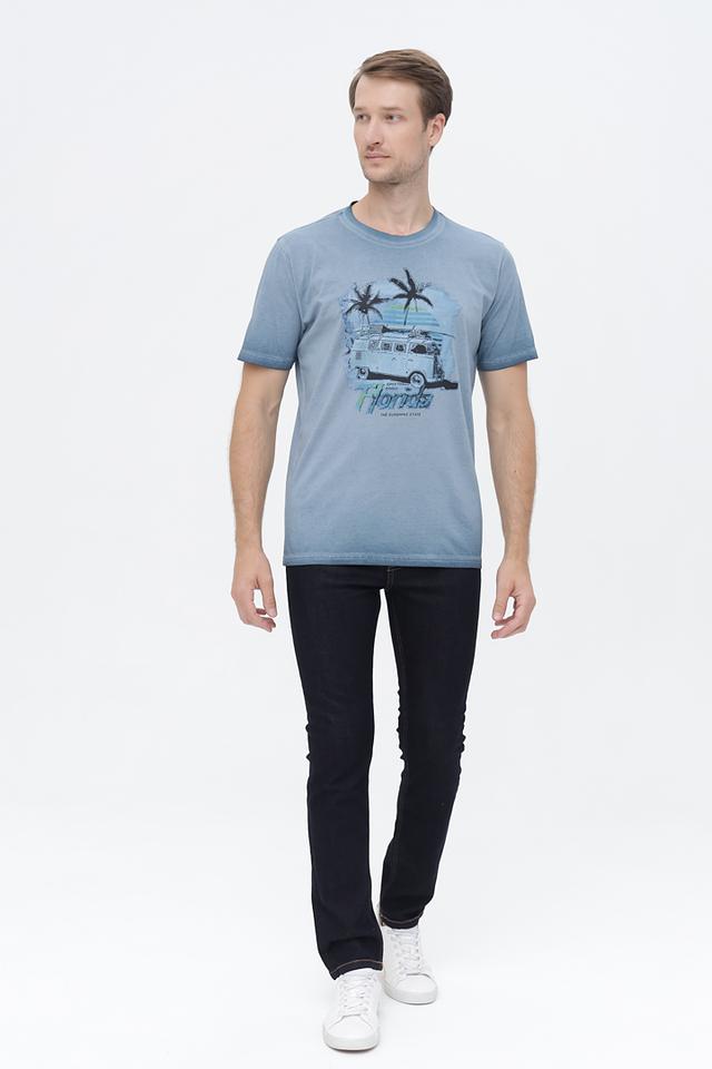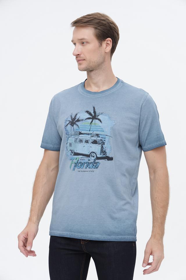 Мужская футболка Casa Moda голубого цвета с ярким принтом в стиле ретро. Изготовлена из 100% хлопка, обеспечивающего комфорт и воздухопроницаемость. Отличный выбор для повседневного образа. Состав: хлопок 100%