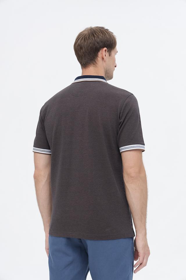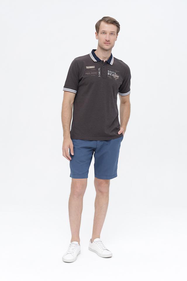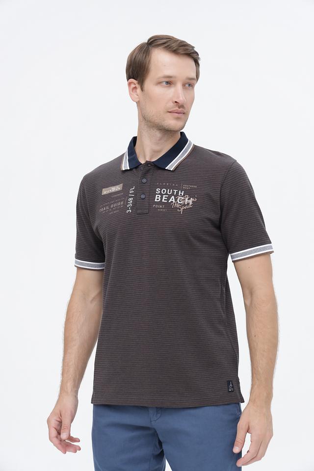 Мужское поло Casa Moda графитового цвета с коротким рукавом, декорированное принтом и контрастной отделкой. Изготовлено из 100% хлопка, обеспечивающего комфорт и воздухопроницаемость. Состав: хлопок 100%