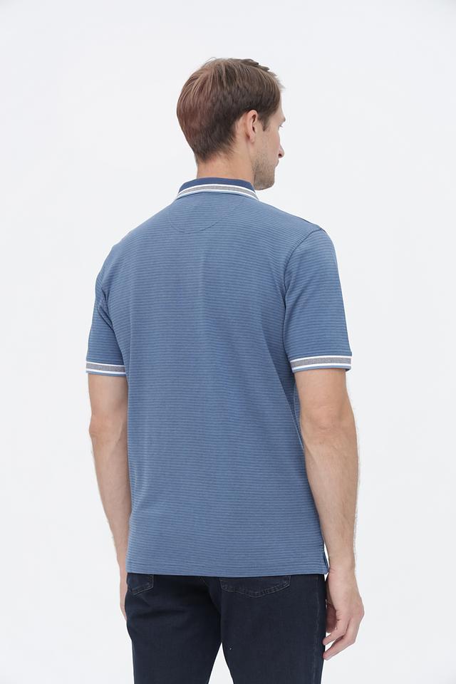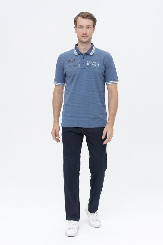 Голубое поло от Casa Moda с вертикальной полоской и контрастной отделкой. Изготовлено из 100% хлопка, обеспечивающего комфорт и воздухопроницаемость. Стильный и универсальный вариант для повседневного образа. Состав: хлопок 100%