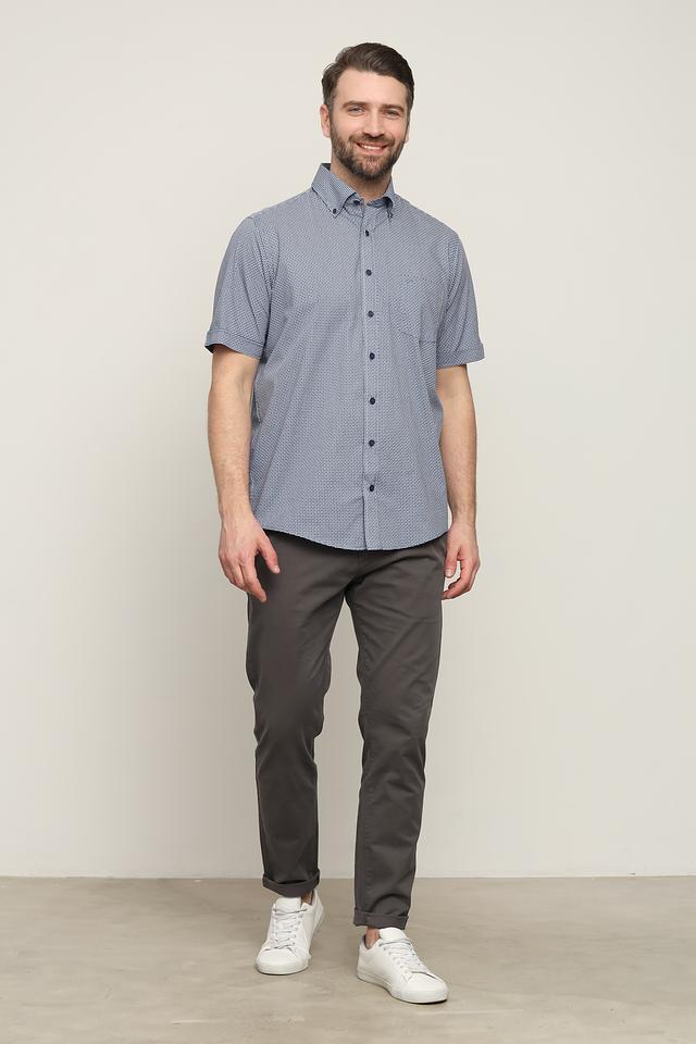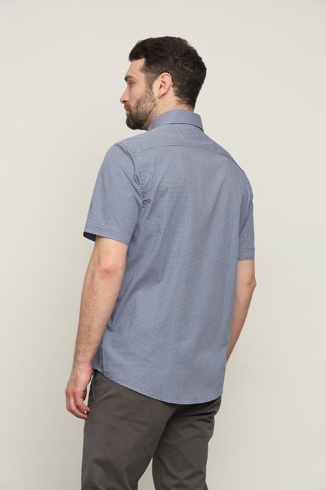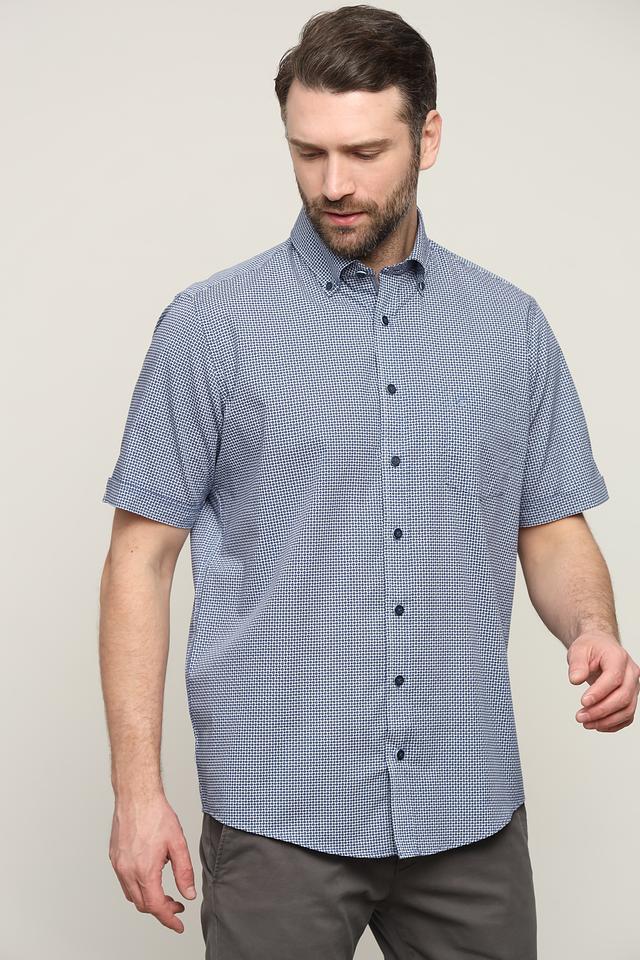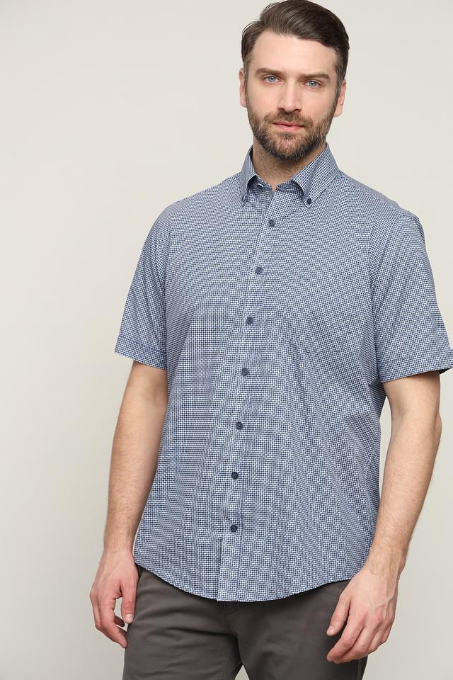 Мужская рубашка Casa Moda голубого цвета с коротким рукавом, выполнена в классическом стиле и украшена мелким клетчатым принтом. Изготовлена из 100% хлопка, обеспечивающего комфорт и воздухопроницаемость. Состав: хлопок 100%