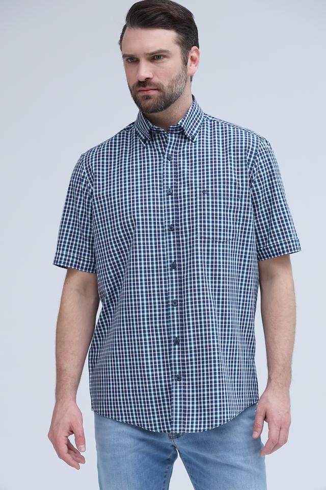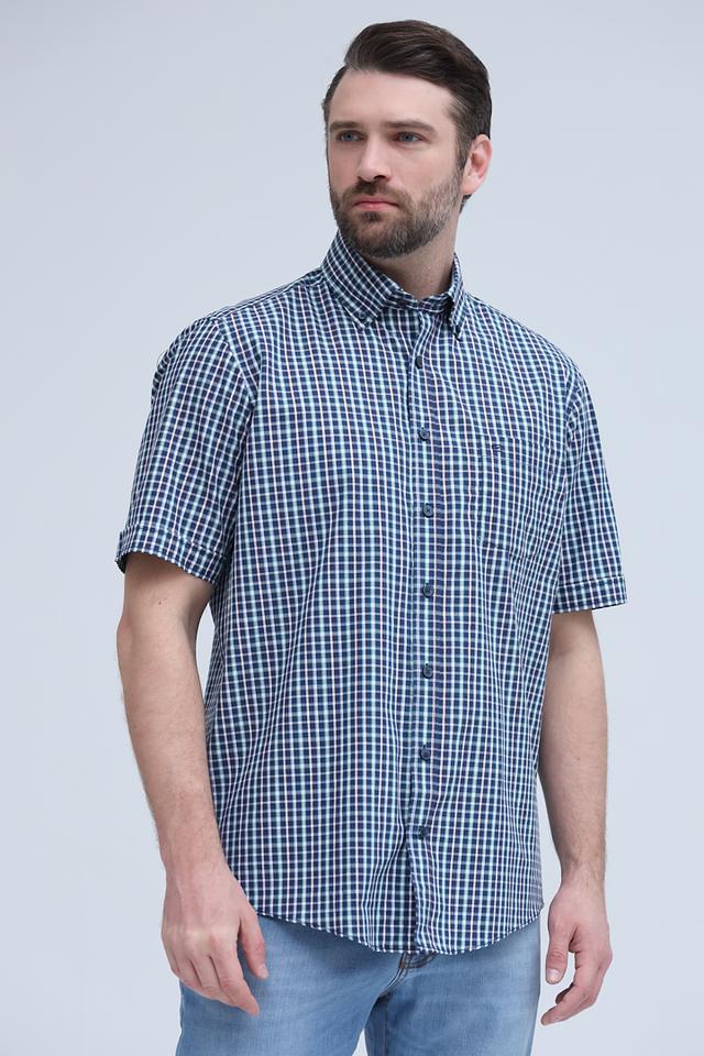 Мужская рубашка Casa Moda синего цвета в классическую клетку – отличный выбор для создания повседневного образа. Изготовлена из 100% хлопка, обеспечивающего комфорт и воздухопроницаемость. Состав: хлопок 100%