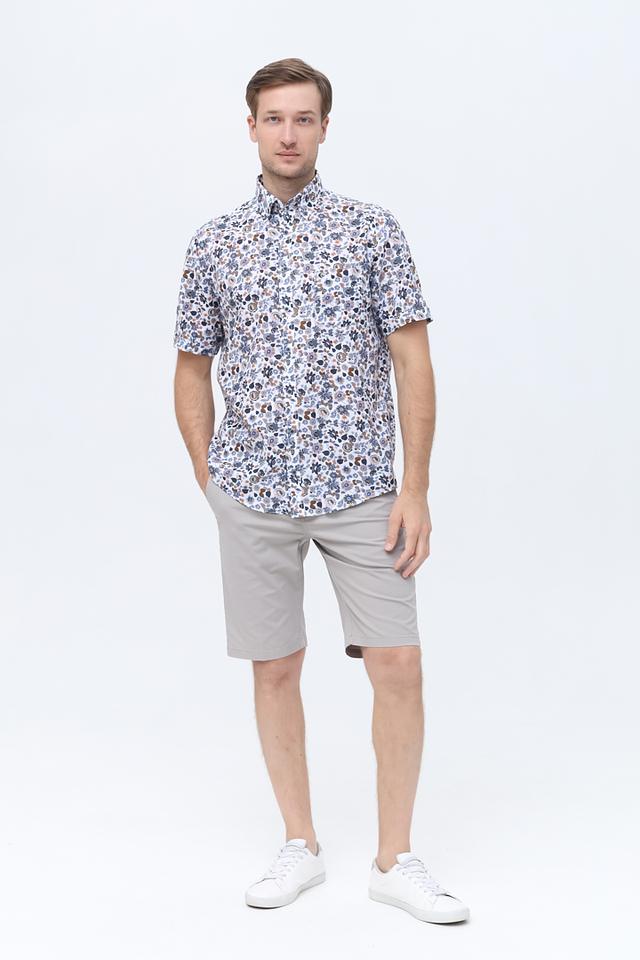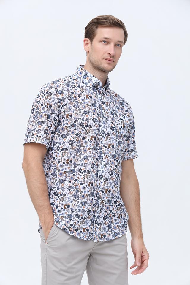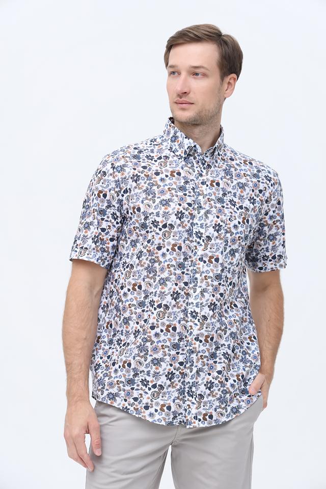 Мужская рубашка Casa Moda с коротким рукавом выполнена в белом цвете с ярким цветочным принтом. Изготовлена из натурального хлопка с добавлением льна, что обеспечивает комфорт и воздухопроницаемость. Состав: хлопок 70%, лен 30%