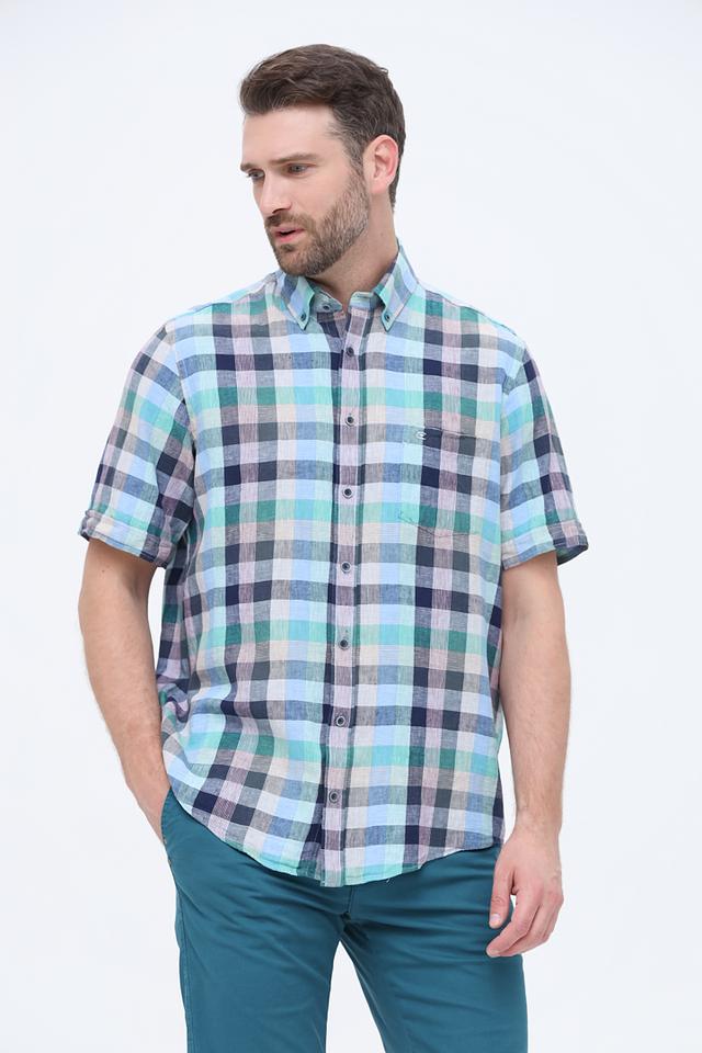 Мужская рубашка Casa Moda с коротким рукавом выполнена в клетку из сочетания льна и хлопка. Удобный крой Casual Fit и Linen Edition делают эту рубашку идеальным выбором для повседневной носки. Состав: лен 55%, хлопок 45%