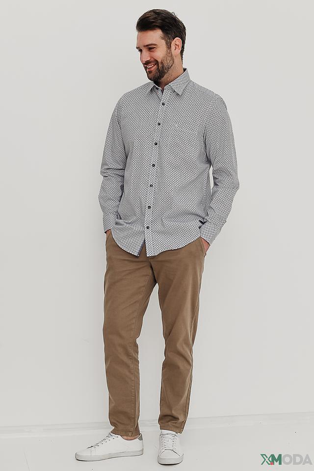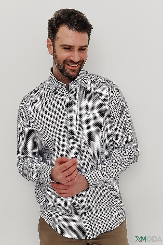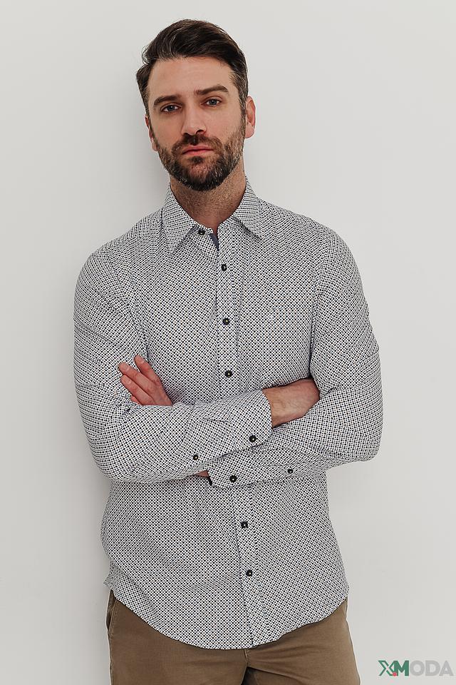 Мужская рубашка Casa Moda светло-голубого цвета с геометрическим принтом. Классический крой и длинный рукав делают эту рубашку универсальным элементом гардероба. Изготовлена из 100% хлопка, обеспечивающего комфорт в носке. Состав: хлопок 100%