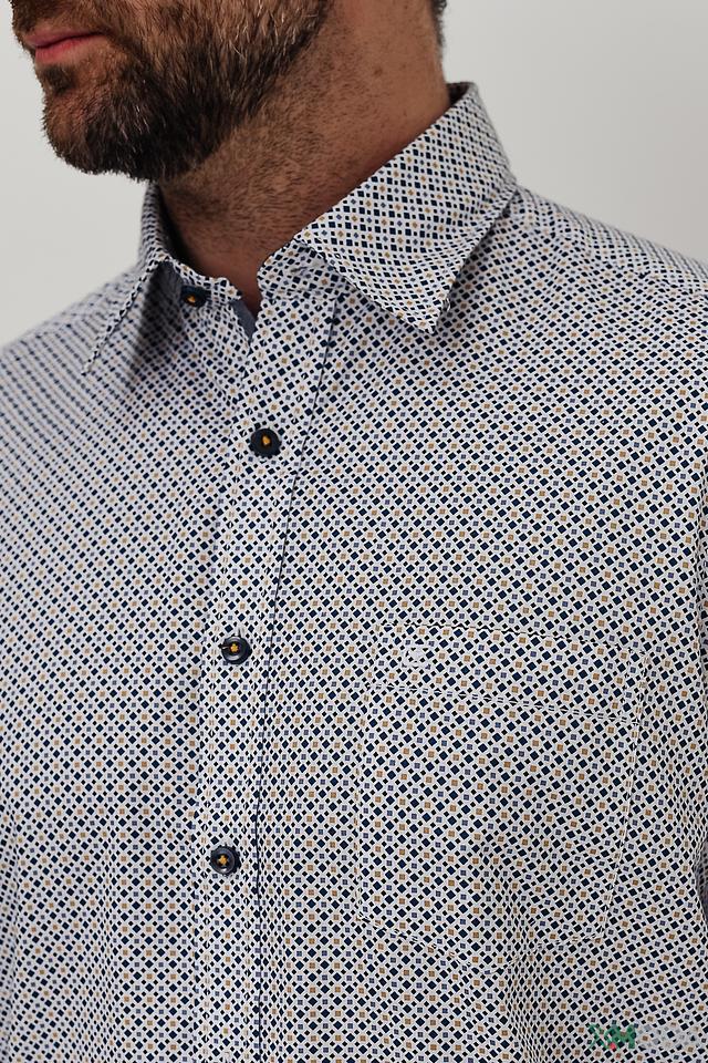 Эта стильная рубашка от Casa Moda станет отличным дополнением к вашему гардеробу. Выполнена в светло-голубой цветовой гамме и украшена мелким геометрическим принтом, придающим ей изысканность.