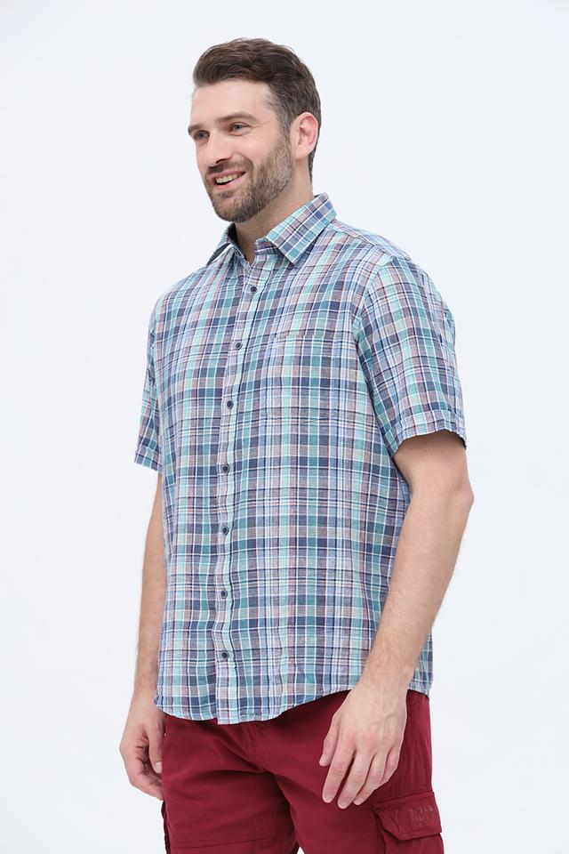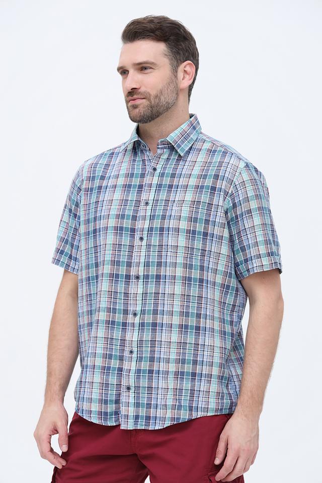Мужская рубашка Casa Moda с коротким рукавом выполнена в клетку из сочетания льна и хлопка. Лёгкая и дышащая модель идеально подойдёт для летнего гардероба. Состав: лен 55%, хлопок 45%