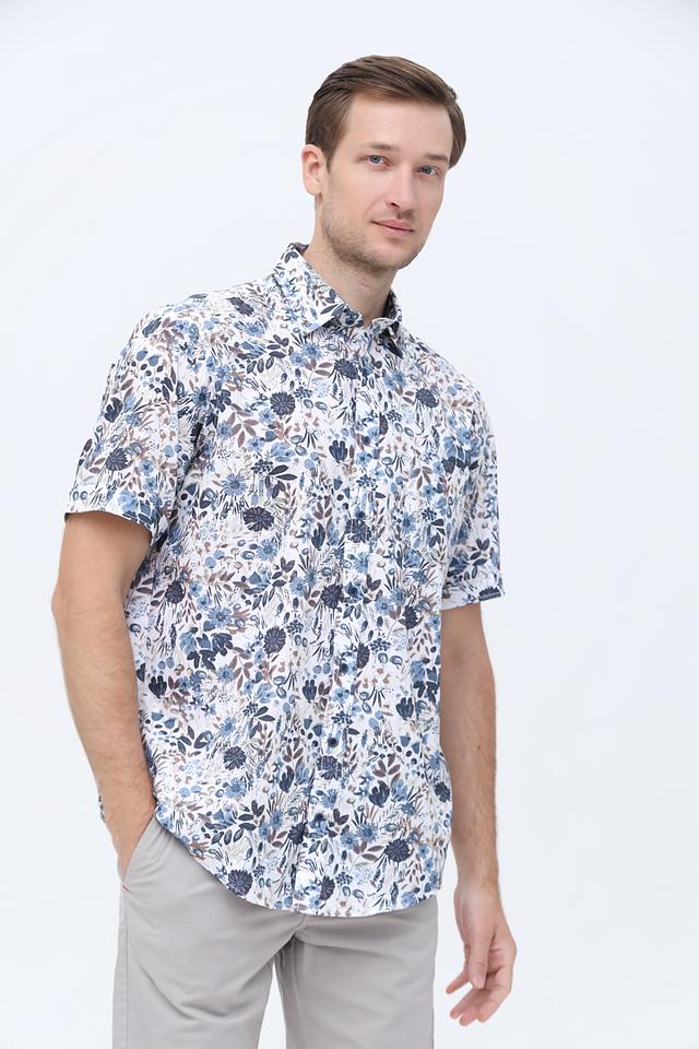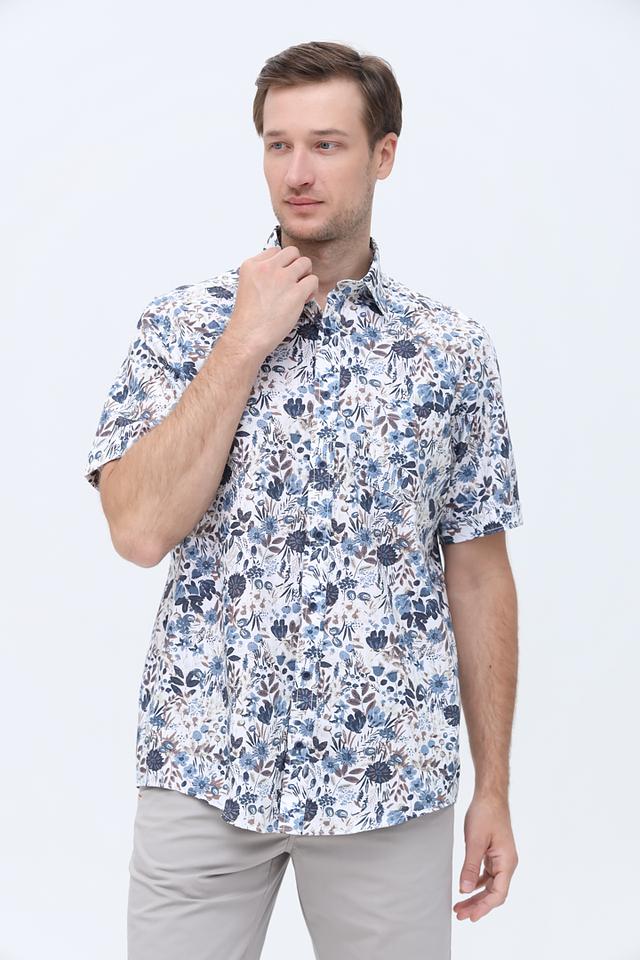 Мужская рубашка Casa Moda голубого цвета с коротким рукавом и ярким цветочным принтом. Изготовлена из 100% хлопка, обеспечивающего комфорт и воздухопроницаемость. Отличный выбор для создания стильного летнего образа. Состав: хлопок 100%