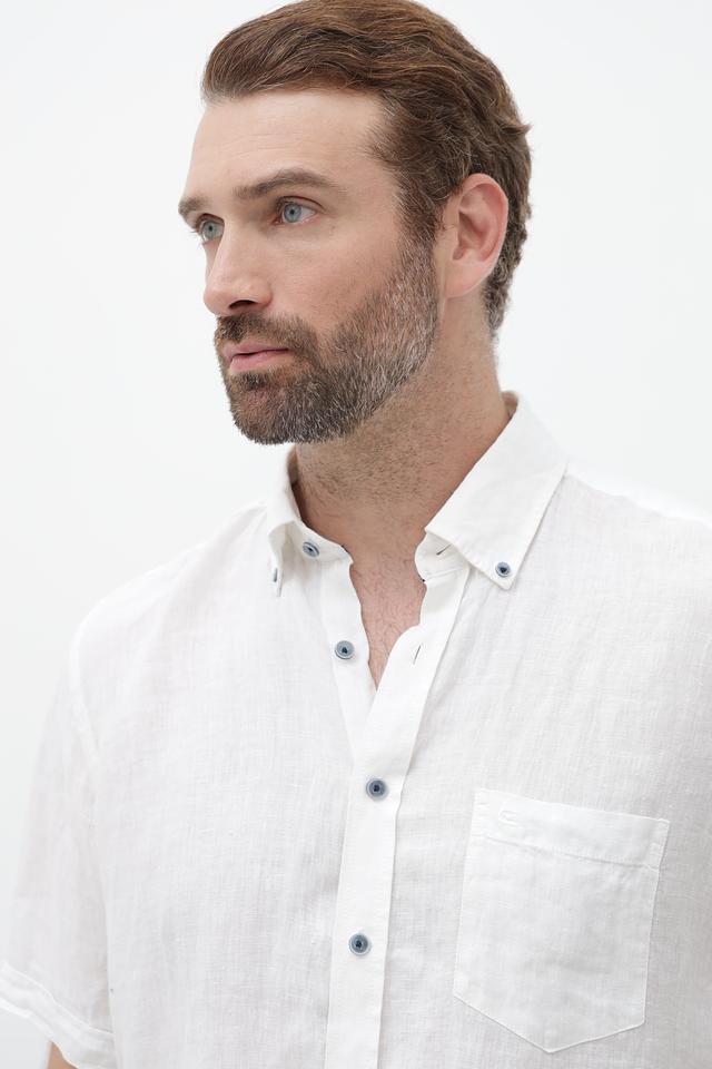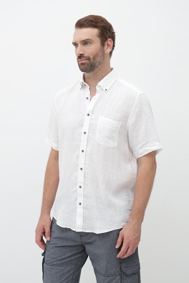 Белая рубашка с коротким рукавом от Casa Moda – это идеальный выбор для создания лёгкого и стильного образа. Изготовлена из 100% льна, обеспечивающего комфорт и воздухопроницаемость в жаркую погоду. Состав: лен 100%