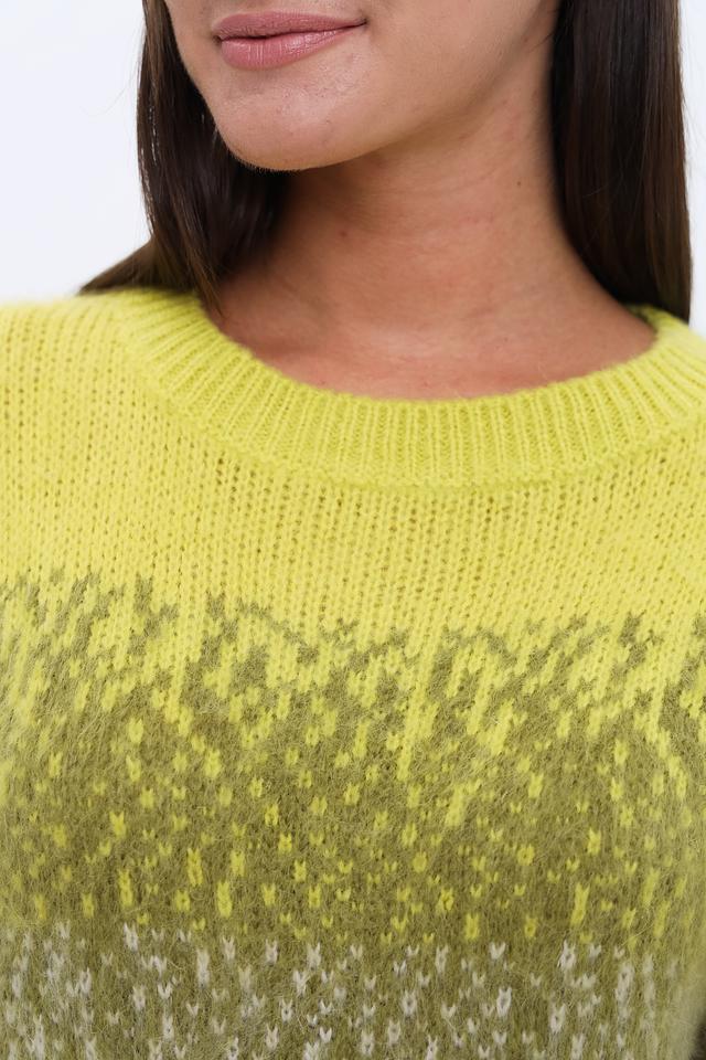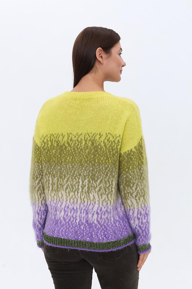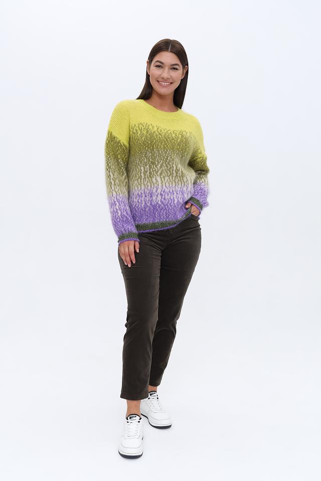 Женский пуловер Catnoir лаймового цвета с эффектным градиентным переходом – стильное и уютное решение для создания модных образов. Изготовлен из мягкой смеси акрила, мохера и полиамида, обеспечивающей комфорт и тепло. Состав: акрил 38%, мохер 29%, полиамид 28%, вискоза 4%, эластан 1%
