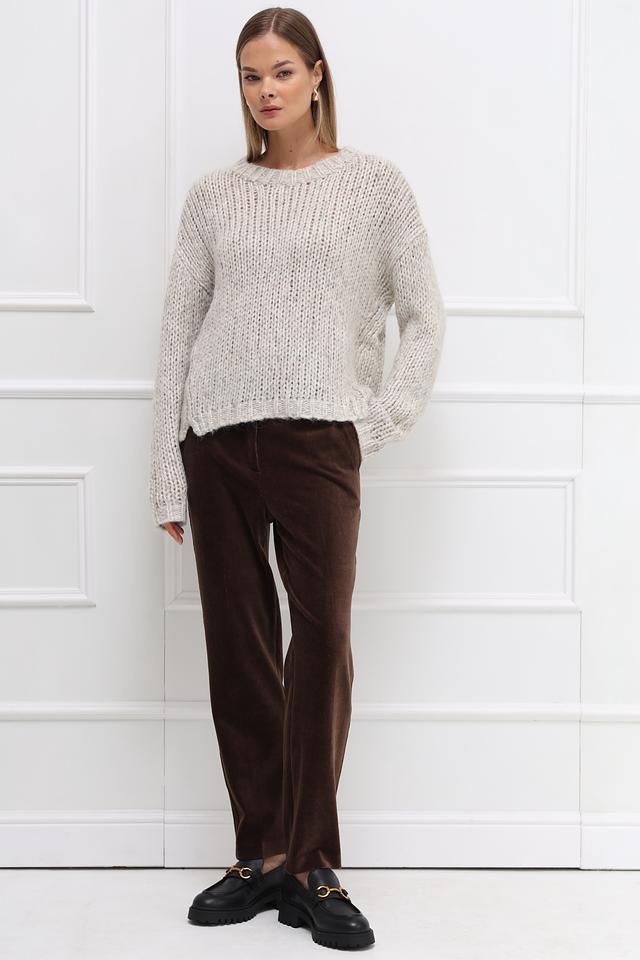 Бежевый пуловер Catnoir свободного кроя выполнен из мягкой пряжи с добавлением шерсти и альпаки. Модель имеет округлый вырез горловины и объёмную текстуру крупной вязки. Состав: полиамид 31%, акрил 28%, полиэстер 19%, шерсть 10%, метализ.нить 8%, альпака 4%