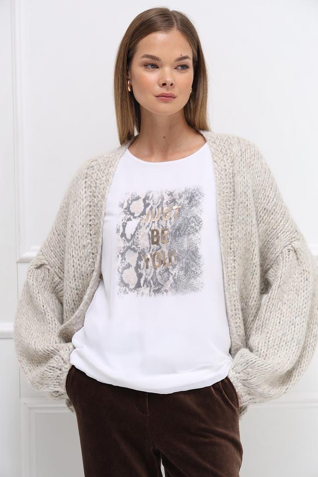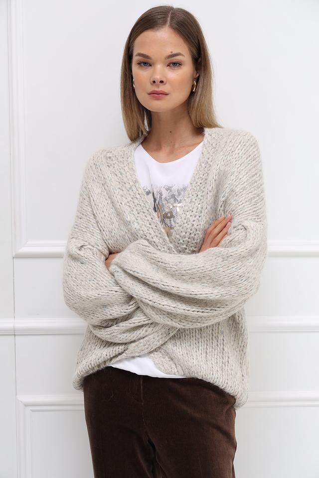 Бежевый жакет Catnoir крупной вязки – стильное и уютное решение для создания модных образов. Модель кардиган с объёмными рукавами и открытой передней частью добавит лёгкости и непринуждённости вашему гардеробу. Состав: полиамид 31%, акрил 28%, полиэстер 19%, шерсть 10%, метализ.нить 8%, альпака 4%