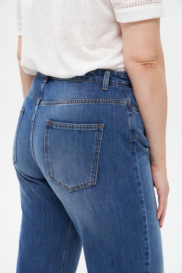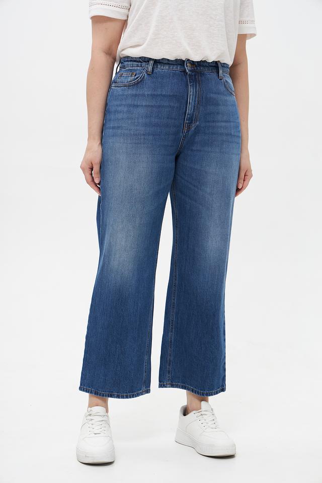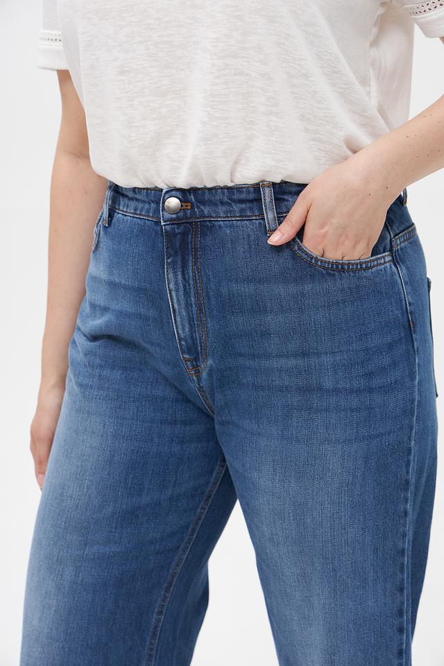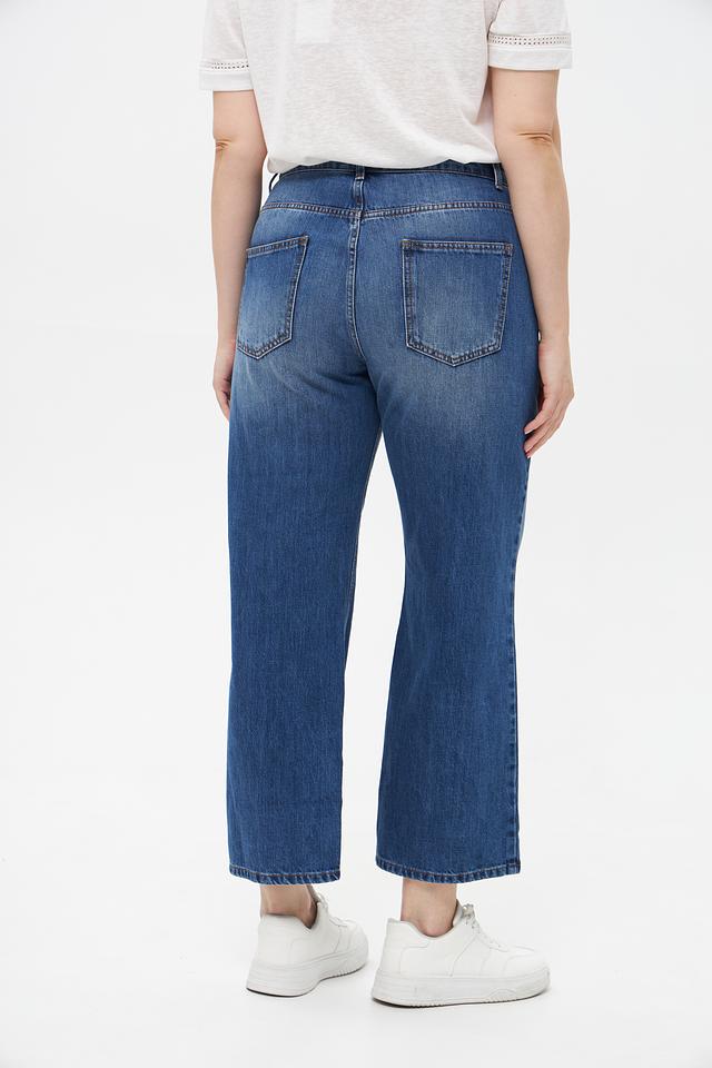 Джинсы изготовлены из 100% хлопка, что обеспечивает комфорт и воздухопроницаемость в течение всего дня. Прямой крой и высокая посадка подчеркивают достоинства фигуры и обеспечивают свободу движений.