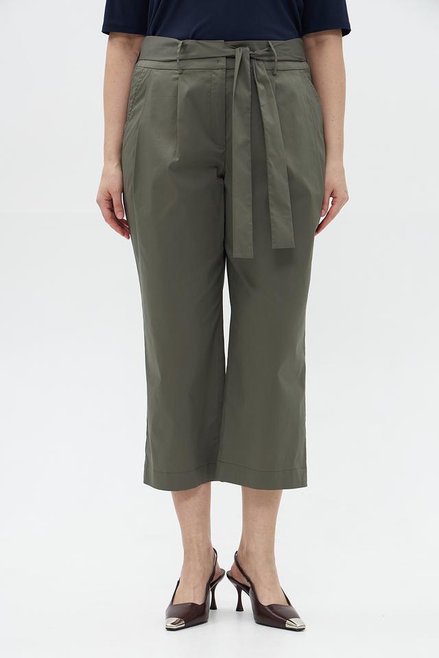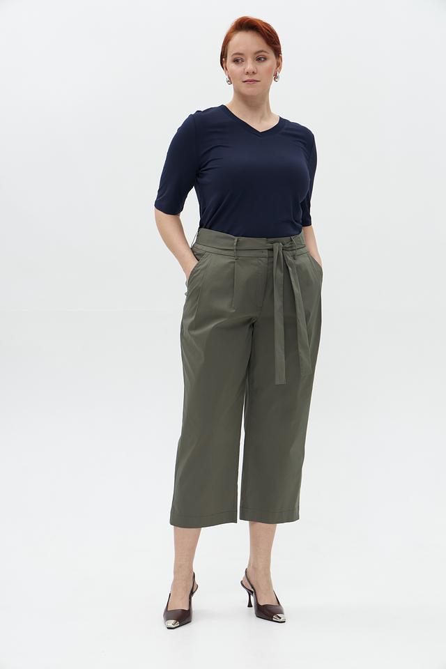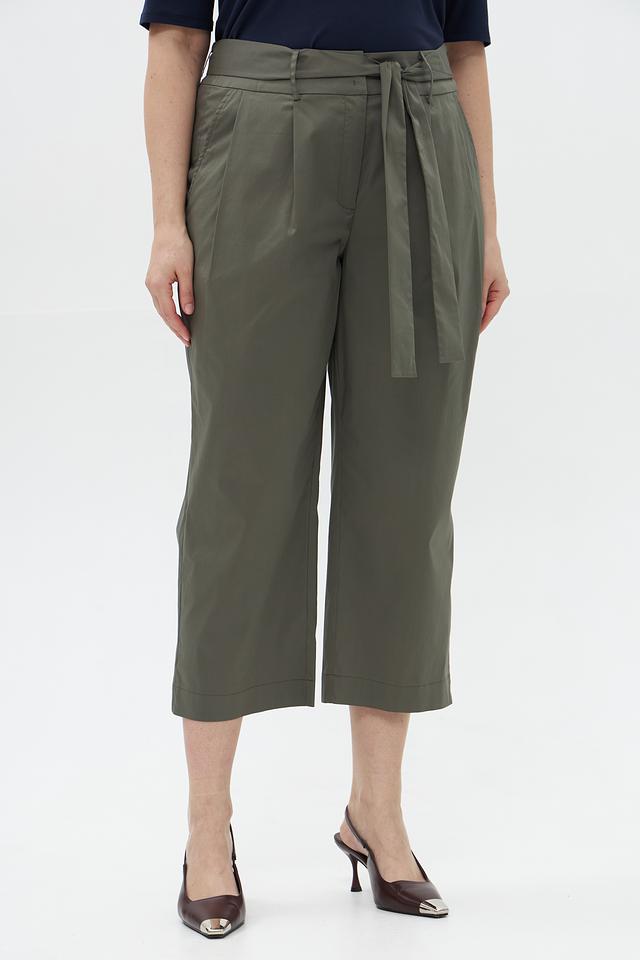 Женские брюки Catnoir цвета хаки – стильная модель кюлотов с завышенной талией и поясом-завязкой. Брюки выполнены из плотной ткани, обеспечивающей комфорт и элегантный силуэт. Состав: хлопок 74%, нейлон 23%, спандекс 3%