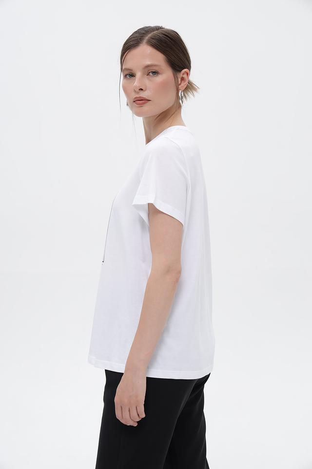 Классический круглый вырез горловины и короткие рукава обеспечивают удобство и свободу движений. Футболка отлично сочетается с джинсами, брюками или юбками.